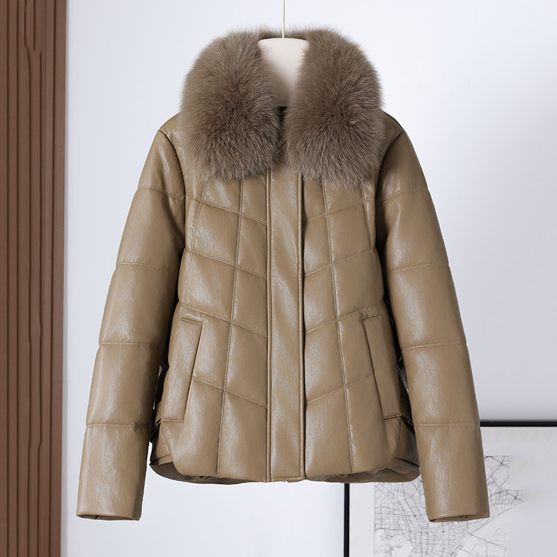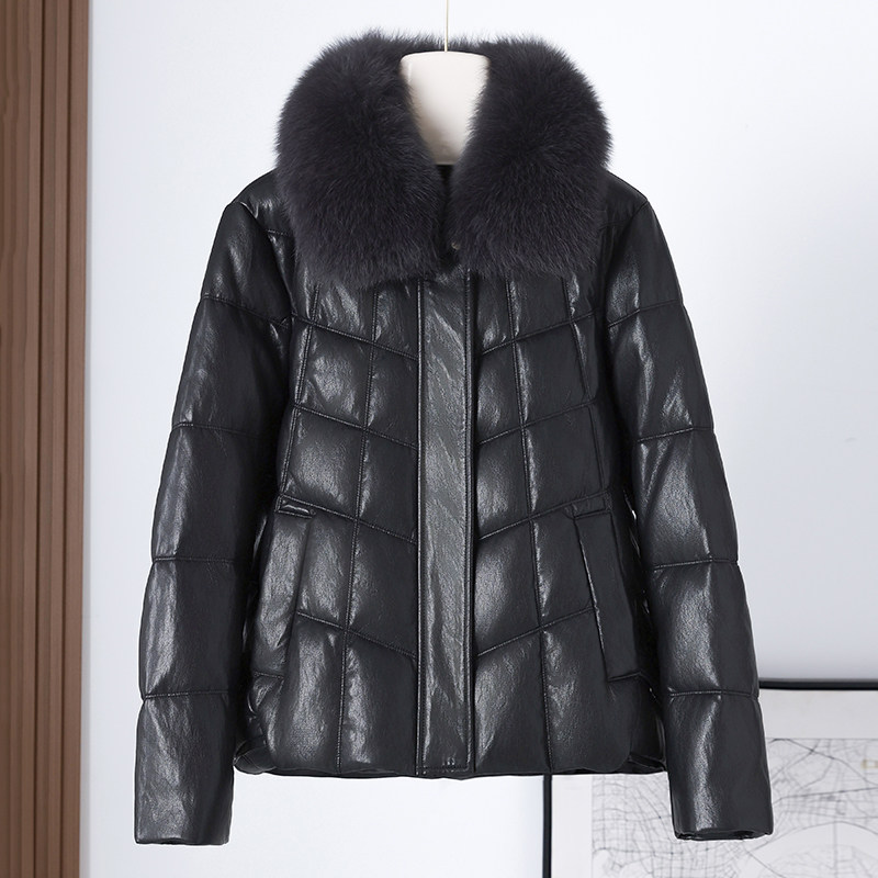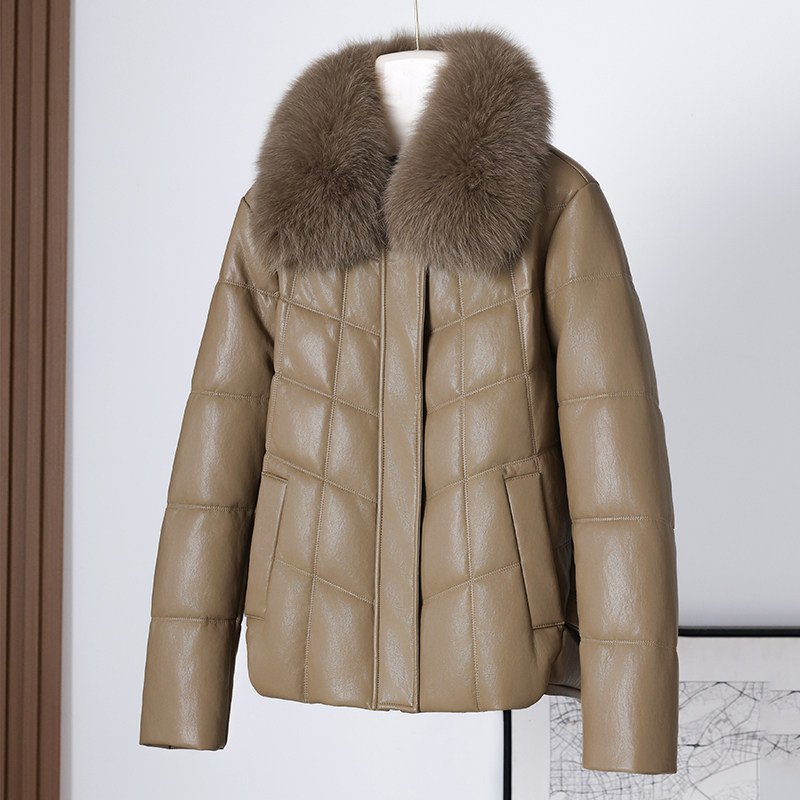 2025新款真皮羽绒服女短款狐狸毛领中老年妈妈绵羊皮海宁皮衣外套
