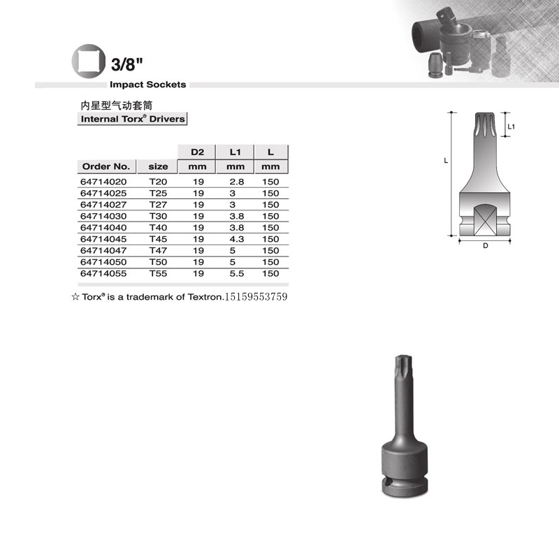 台湾霹雳马套筒头中长套头内星型气动电动梅花十二角10mm加长批头