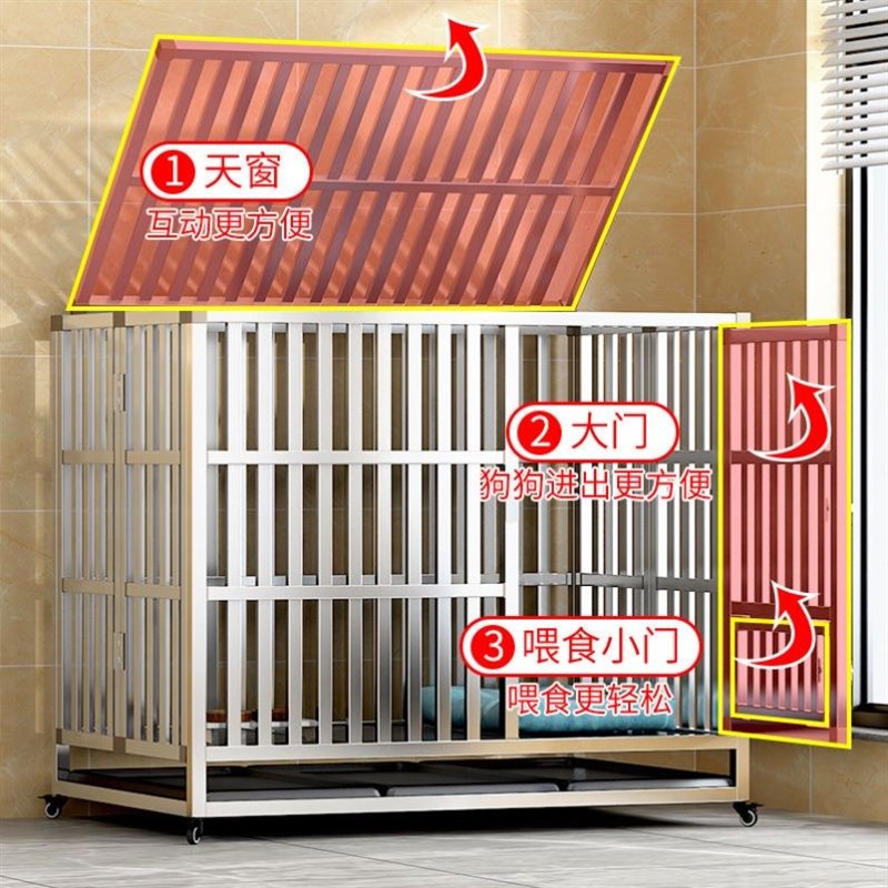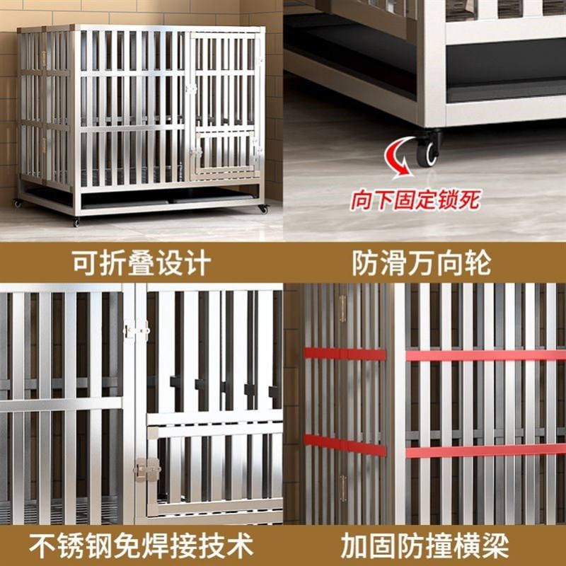 全方管不锈钢狗笼子大型犬中小型宠物笼带厕所泰迪金毛拉布拉多