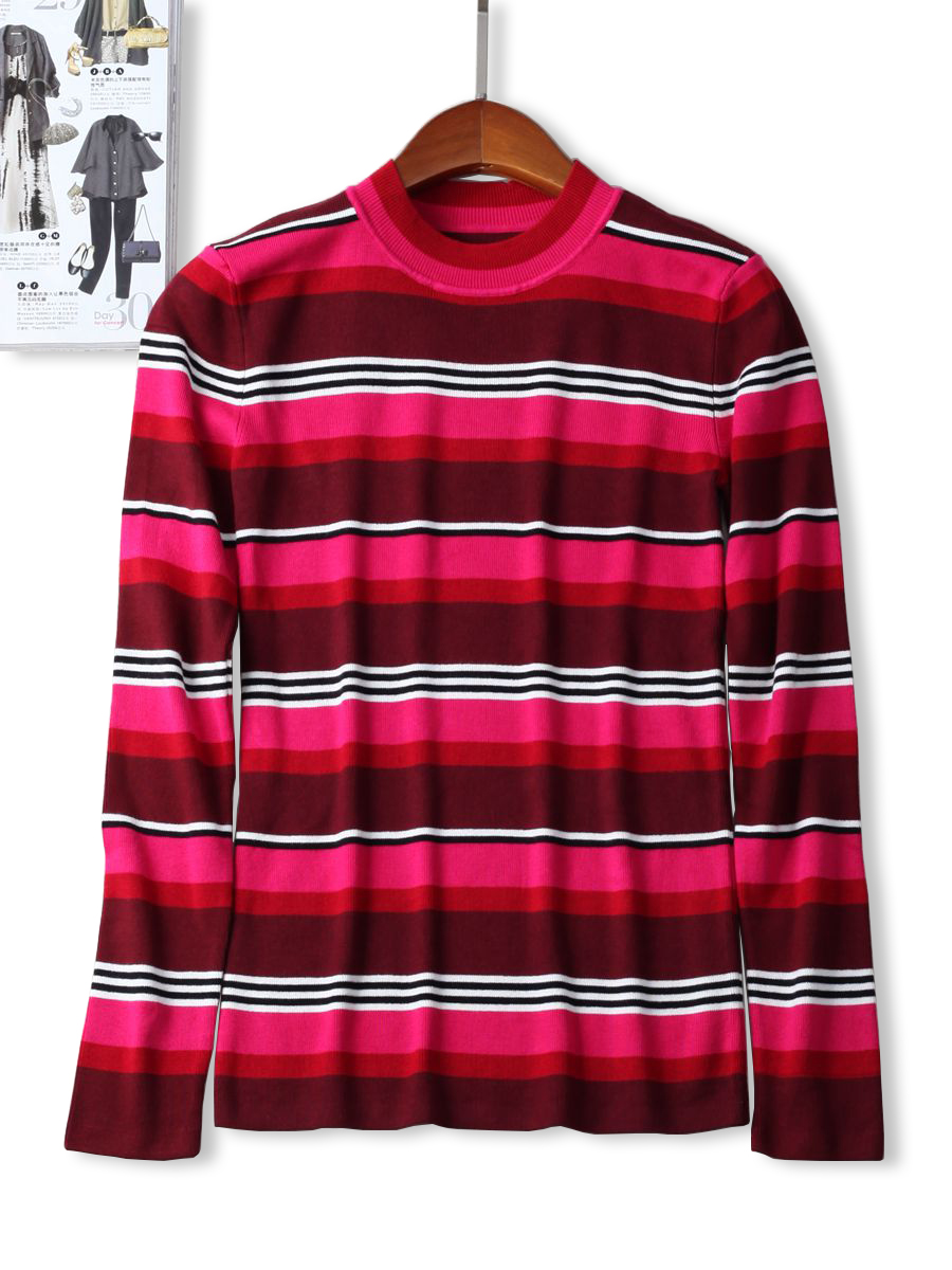 外贸原厂 德国单 设计感撞色条纹 修身圆领长袖套头针织打底衫女