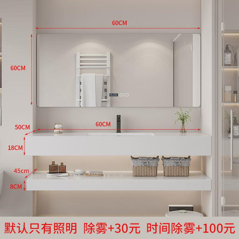 定制岩板双层无缝壁挂式浴室柜组合洗脸池台盆洗手台大理石洗漱台