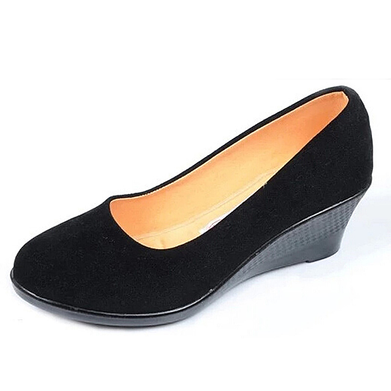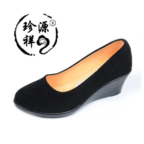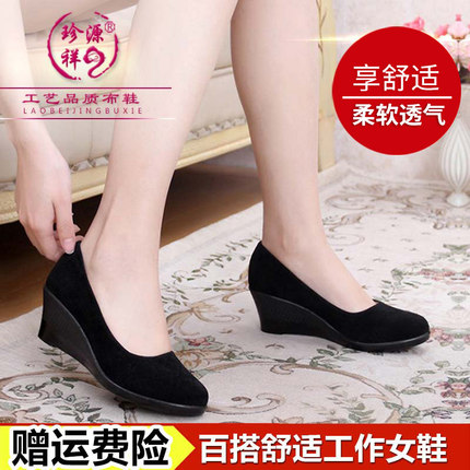 春秋老北京布鞋女鞋坡跟套脚工作鞋高跟职业上班鞋工装黑布鞋单鞋