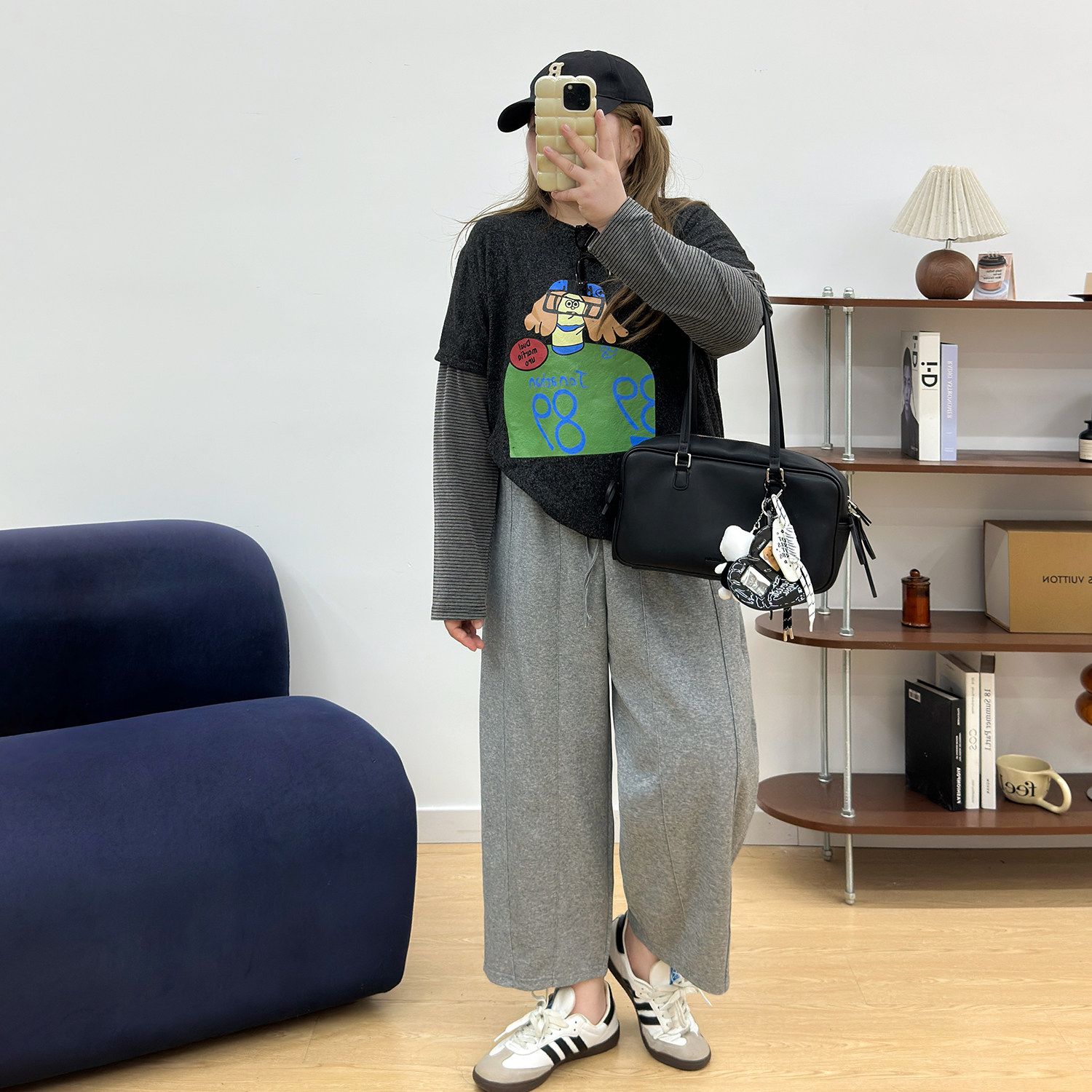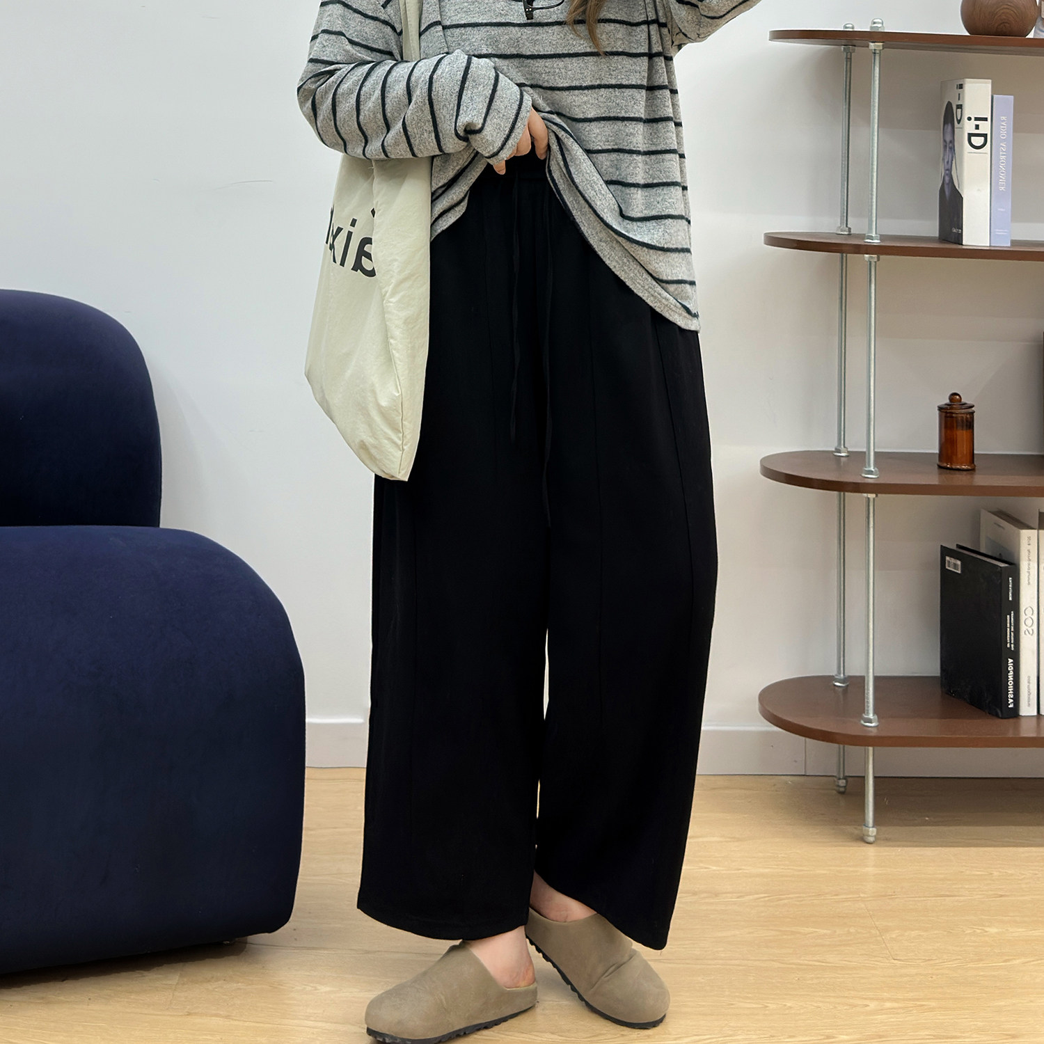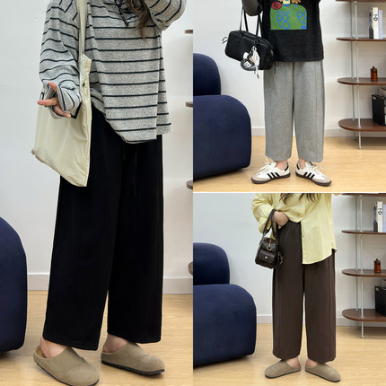 宛宛大码藏青色阔腿裤女秋季胖mm松紧腰宽松休闲哈伦裤九分直筒裤