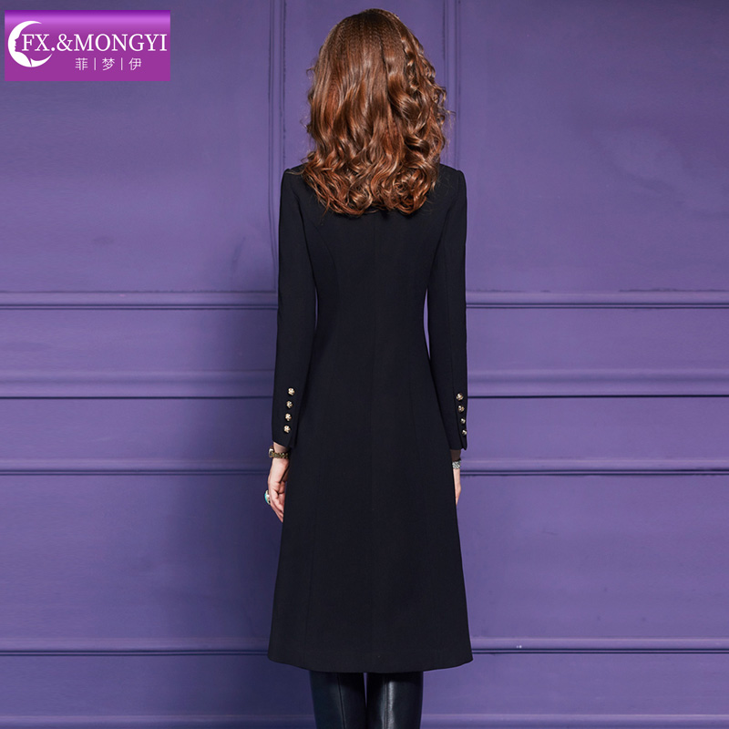 菲梦伊醋酸西装领黑色风衣外套女秋季赫本风英伦风绣花中长款大衣