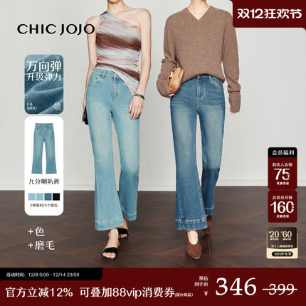 CHICJOJO万向弹九分微喇牛仔裤