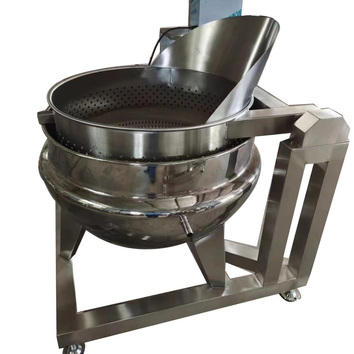 圆形不锈钢蒸汽液压翻筐锅炸鸡腿自动出料锅羊肉牛肉卤煮焯水锅