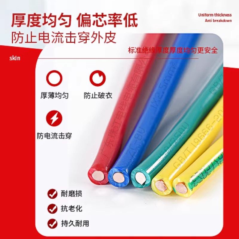 珠江电线官方旗舰店ZC-BV2.5/4/6平方电线国标铜芯阻燃电缆家用装