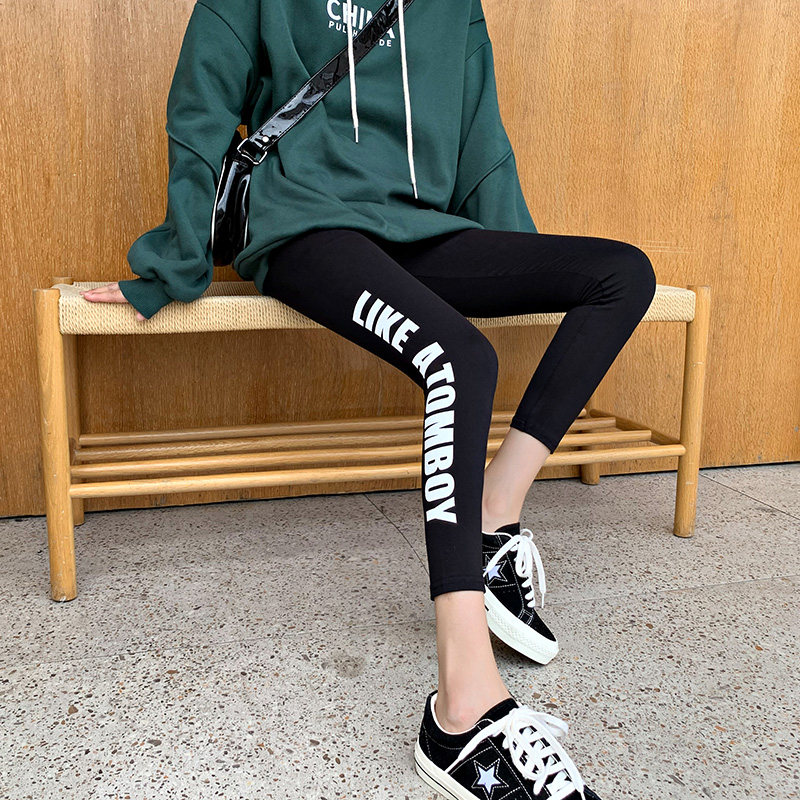 打底裤女外穿春秋款高腰加绒显瘦紧身百搭字母黑色弹力小脚长裤潮