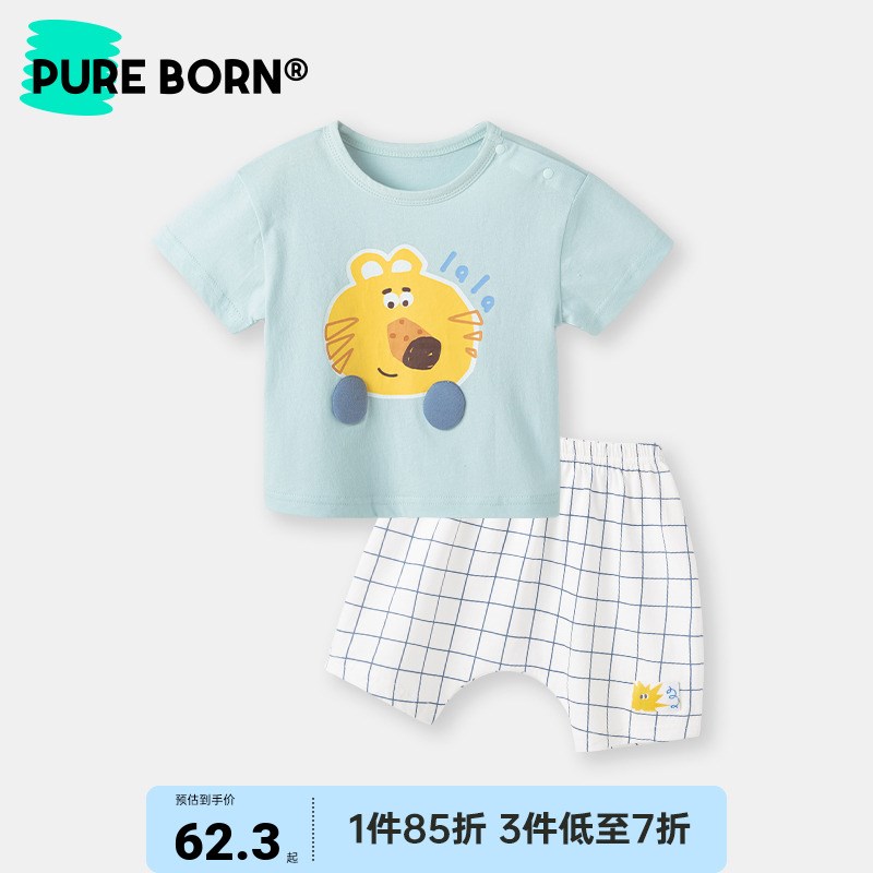 博睿恩 婴儿纯棉男女童夏装宝宝夏季薄款套装分体两件套时髦洋气