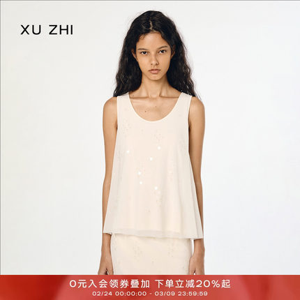 XUZHI2025春系列新品立体钉珠装饰小众设计感垂感背心半裙套装