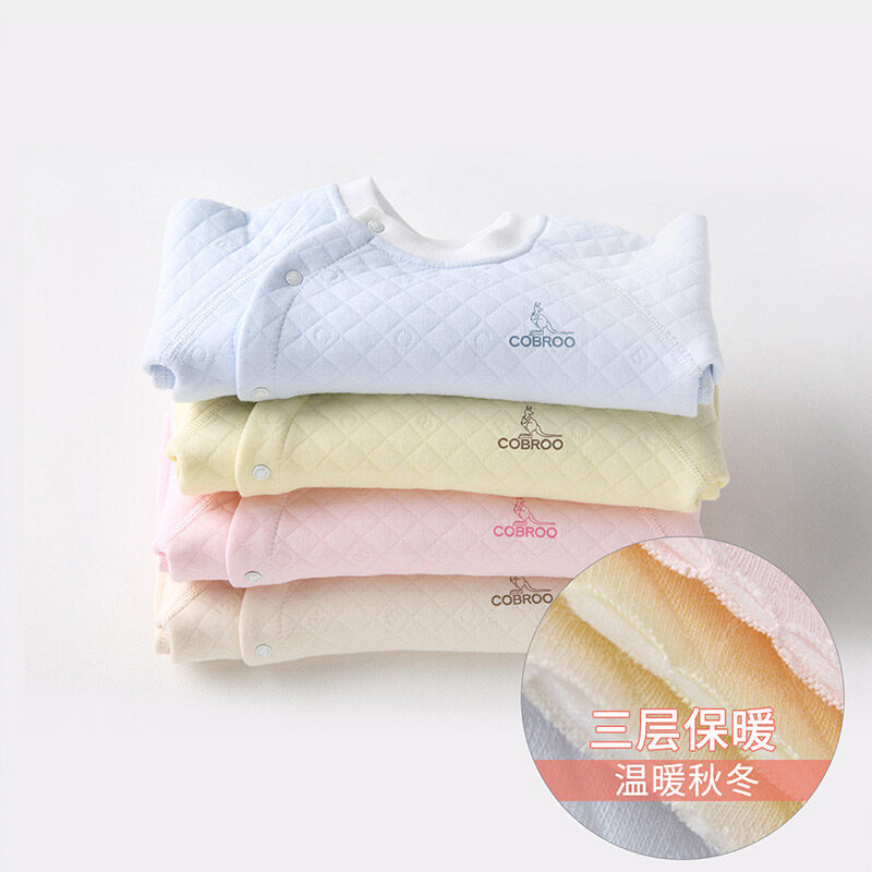 酷尾巴新生婴儿宝宝春秋季连体衣夹棉保暖打底内衣哈衣纯棉空气棉