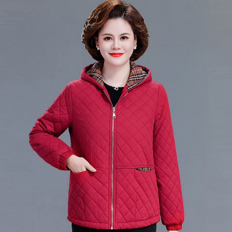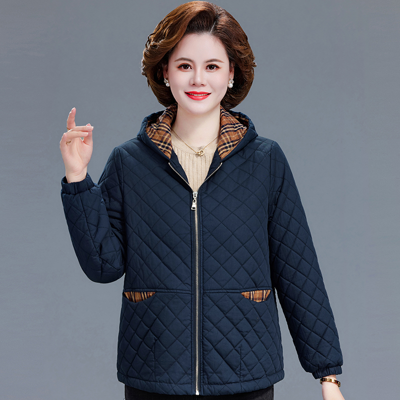 中老年人纯棉外套女长袖大码宽松休闲带帽上衣妈妈薄棉衣夹棉衬衫