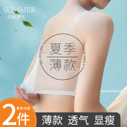 无痕内衣女夏季薄款无钢圈大胸显小胸聚拢美背心式运动文胸罩超薄