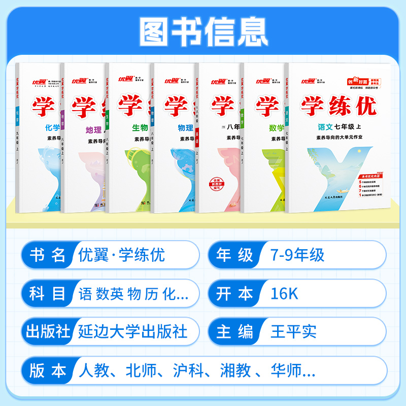 优翼【学练优】2025秋新课标初中八年级上册下册语文数学英语人教版/北师/沪科/华师版课本同步练习册赠送检测卷中学教辅
