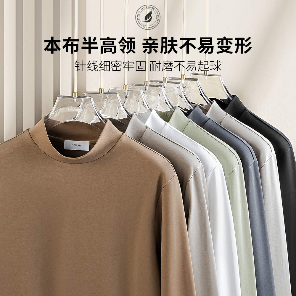 半高领打底衫男秋冬季丝光棉长袖T恤内搭保暖黑色抗静电中领上衣