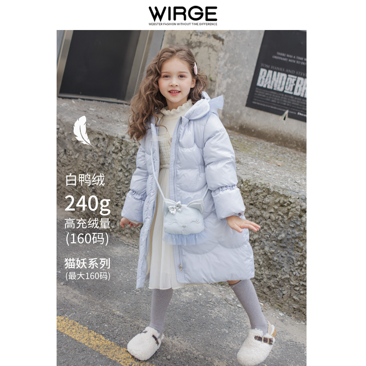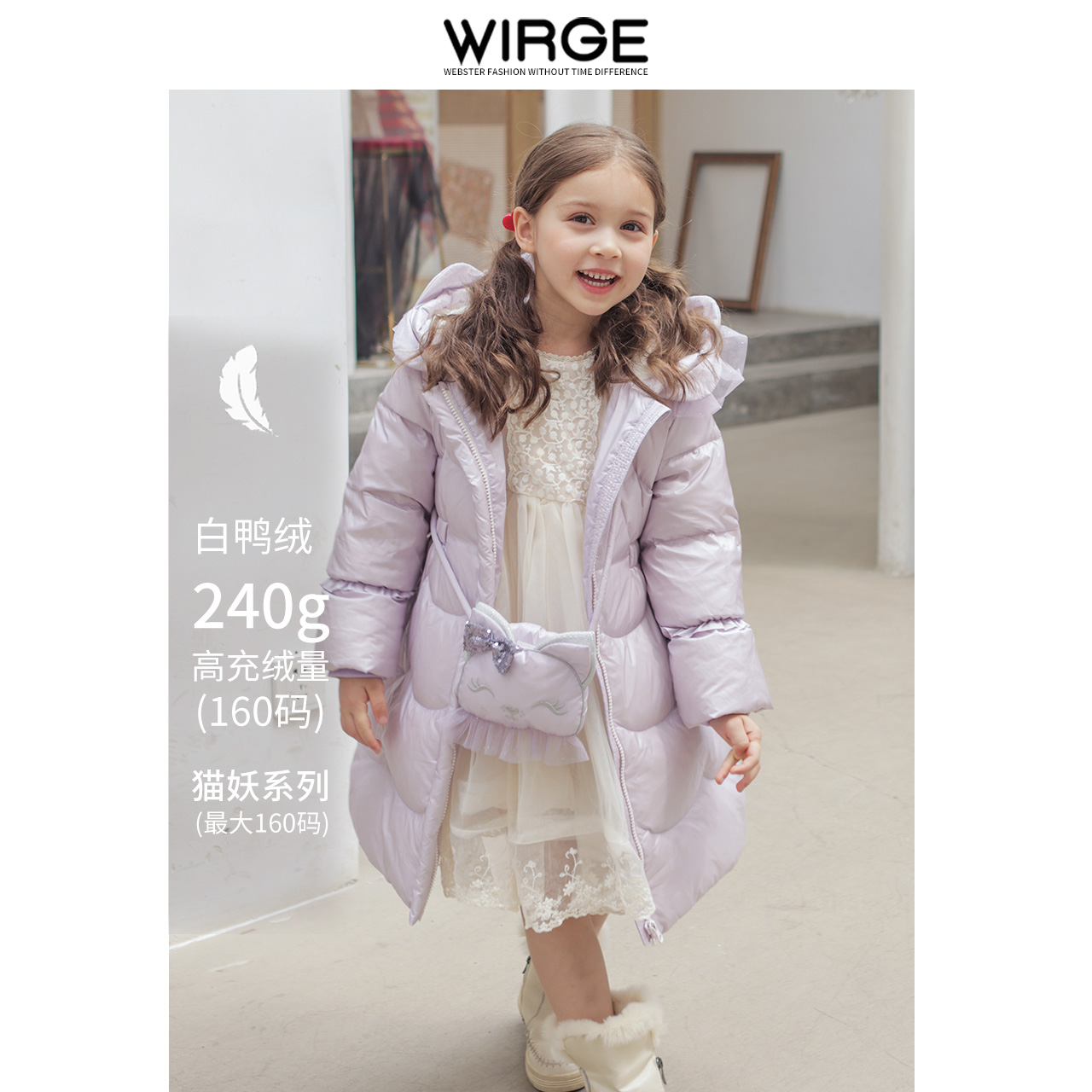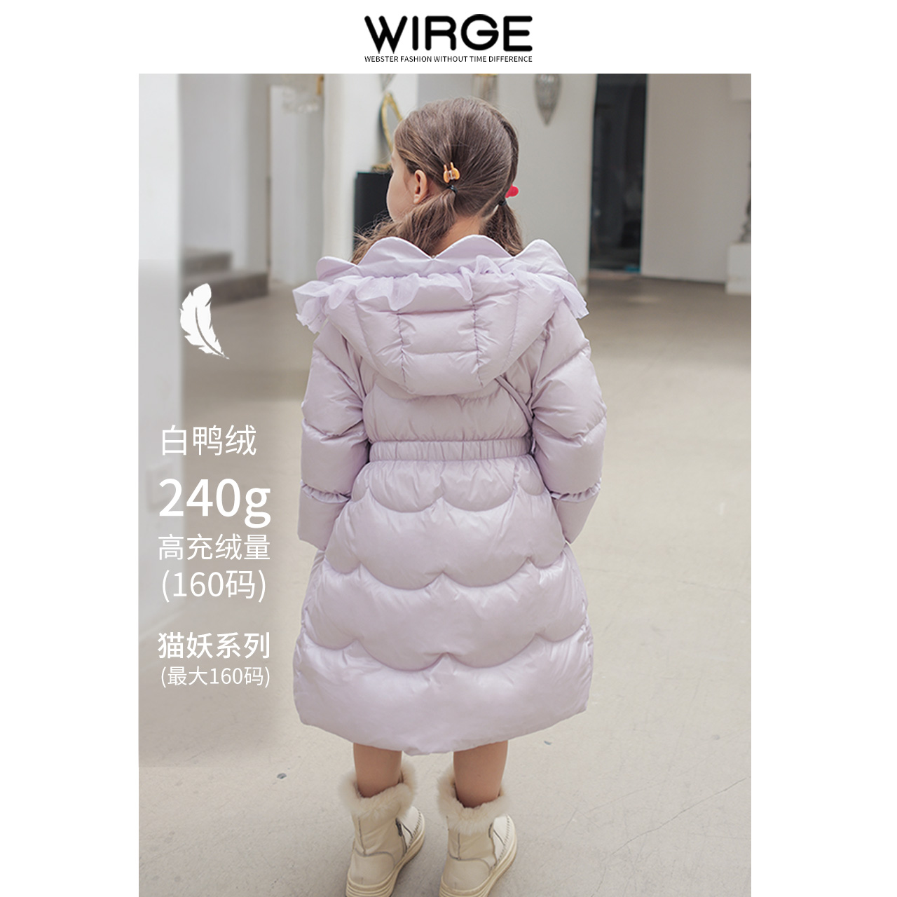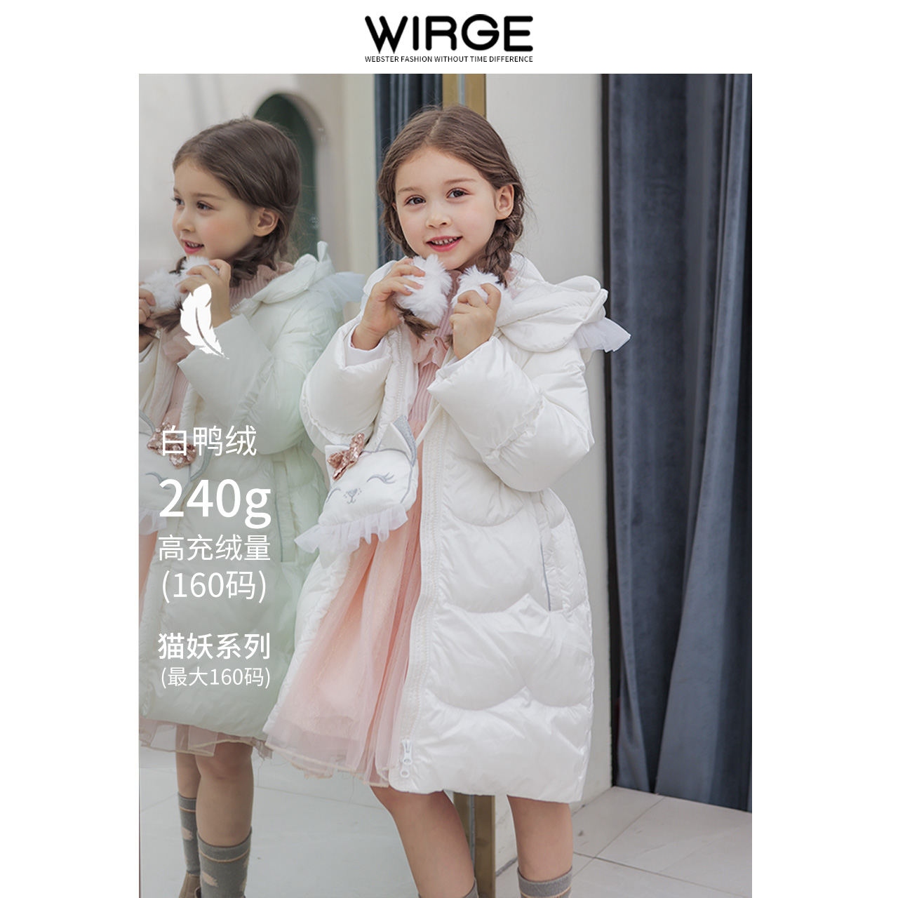 韦氏新品儿童欧美风淑女收腰羽绒服加厚长款白鸭绒女童羽绒服