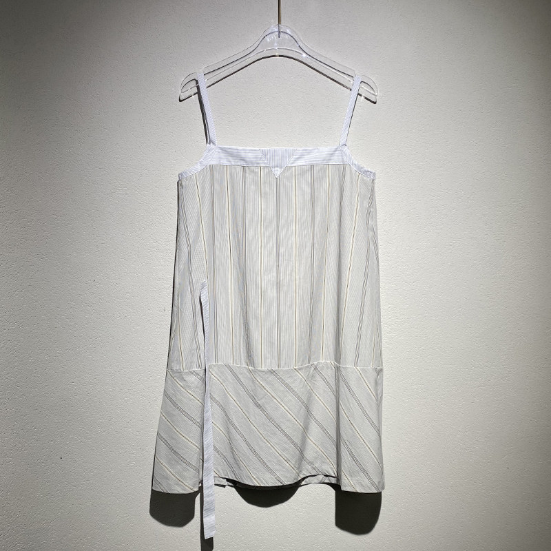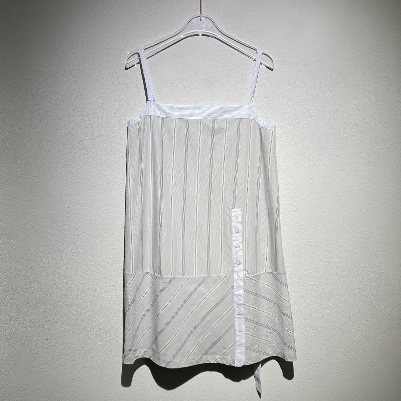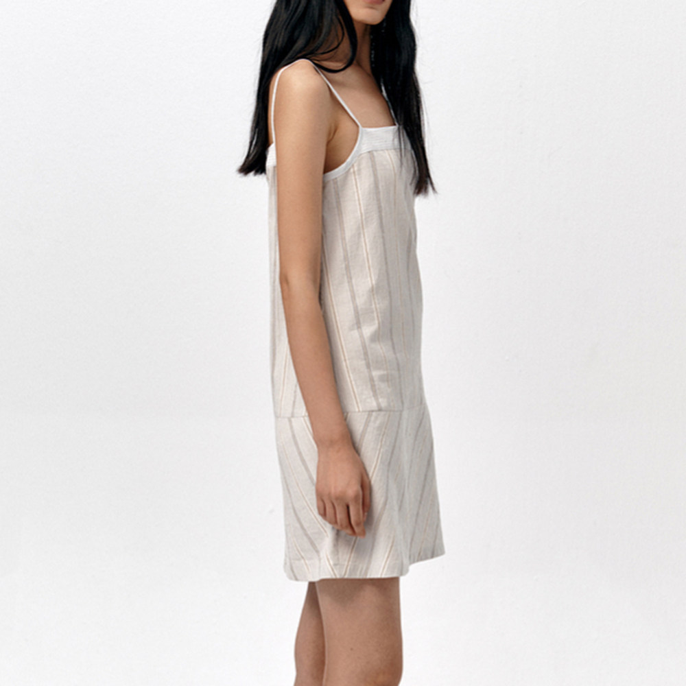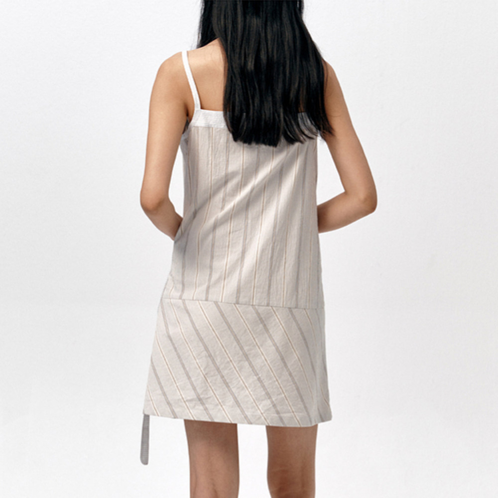 纯色条纹拼接吊带裙女