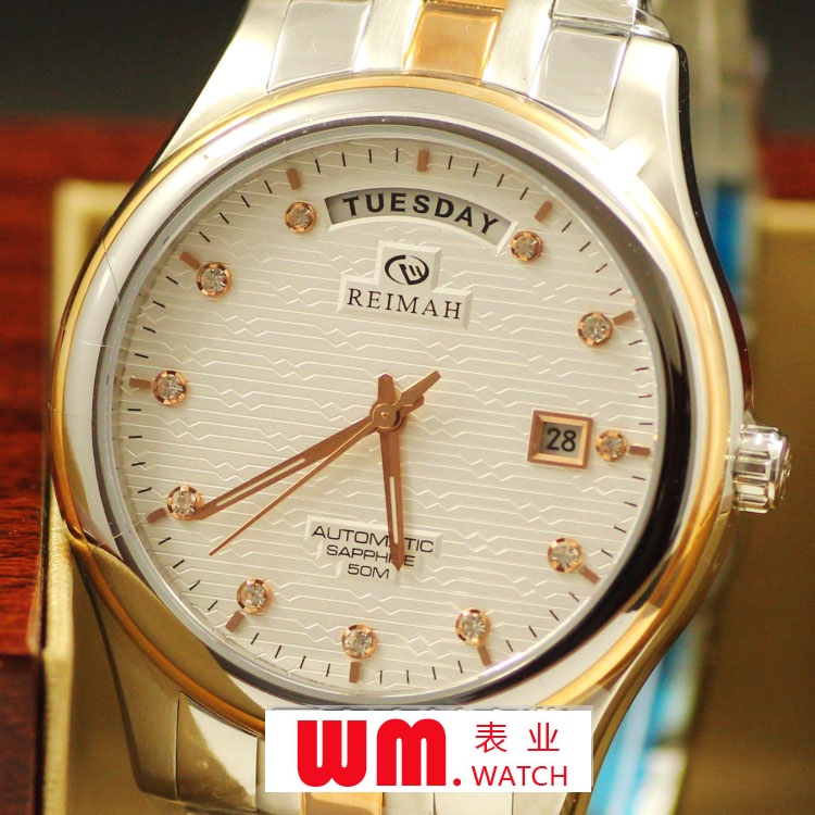 特价正品雷迈手表8039自动机械表精钢情侣表商务男女表蓝宝石表镜