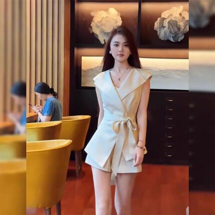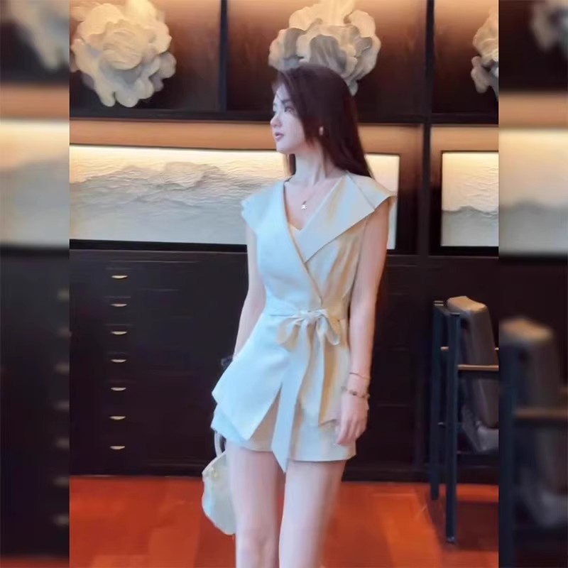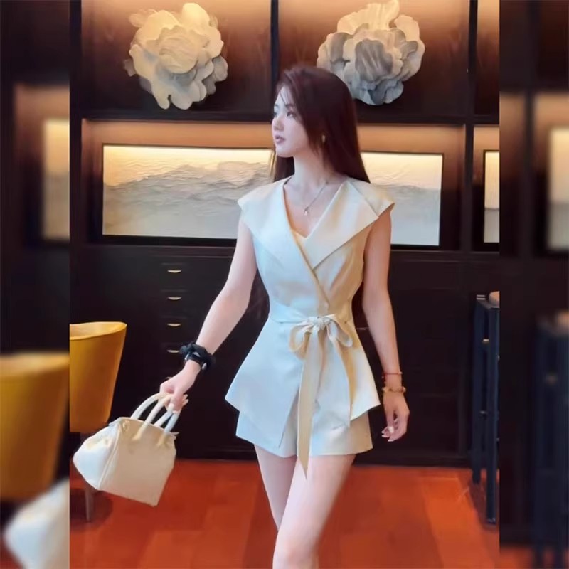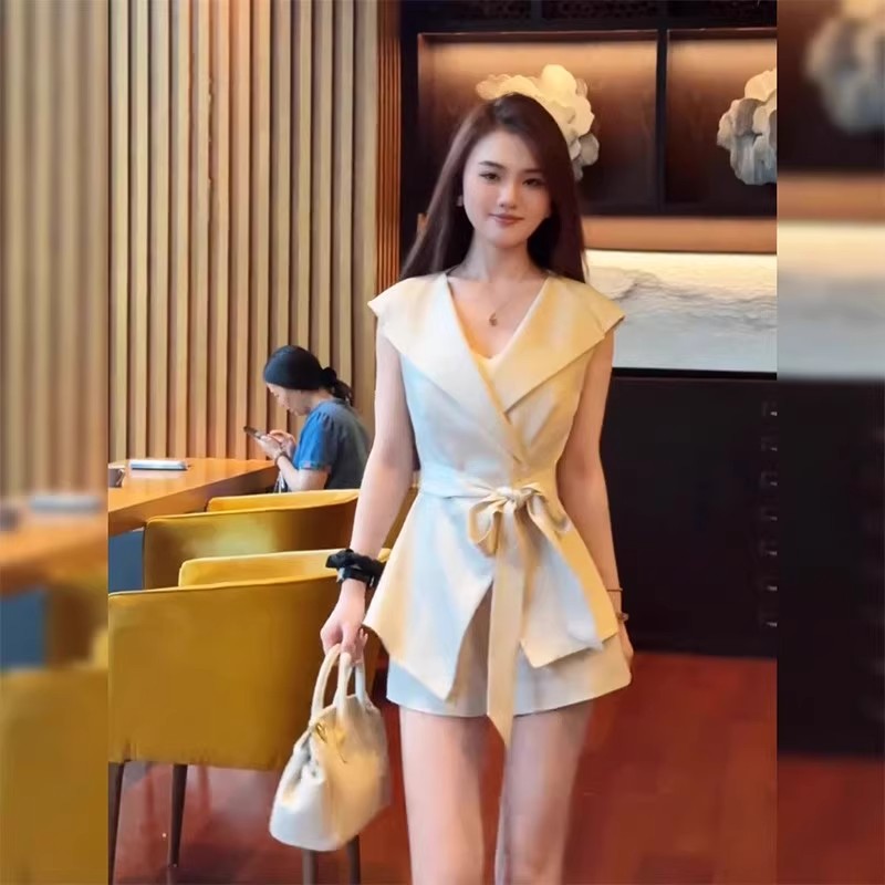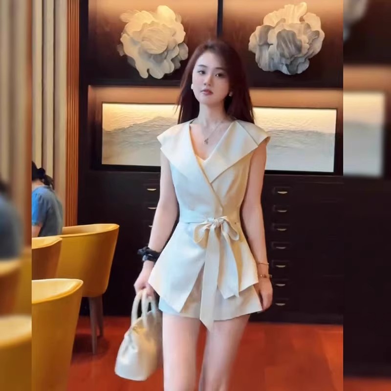 御姐气质翻领系带马甲上衣短裤套装女2025夏季新款时尚女装两件套