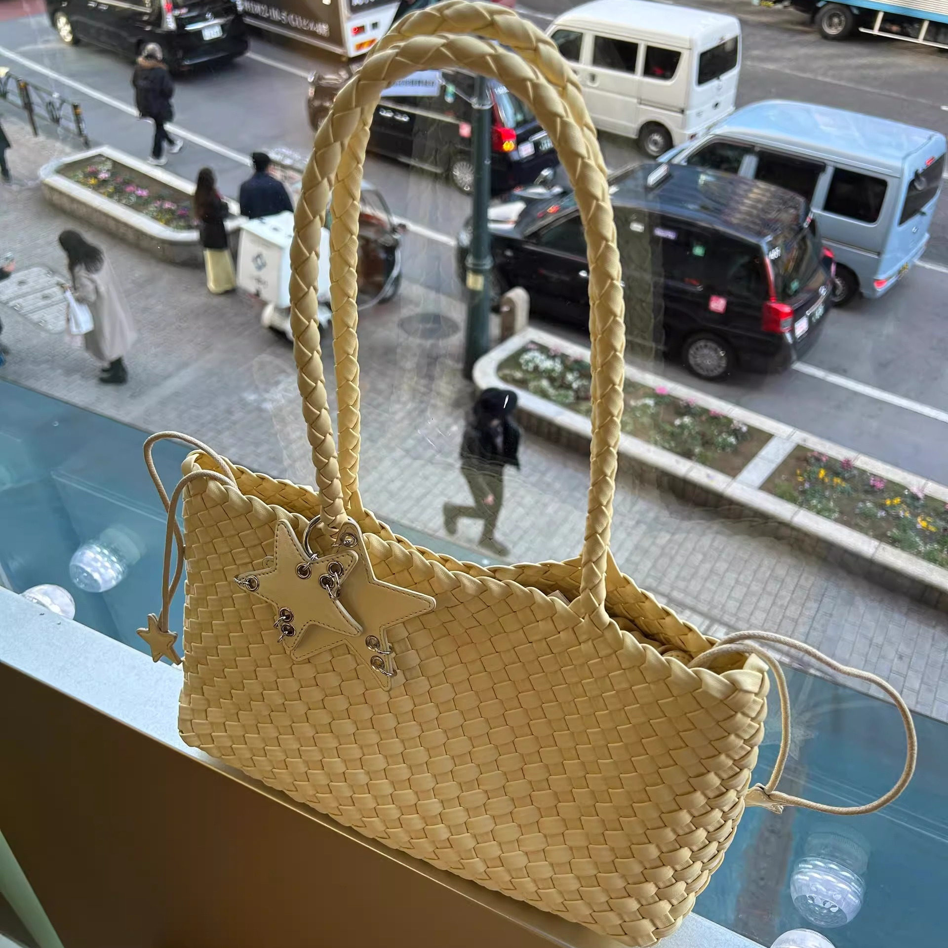 手工编织鹅蛋黄托特包大容量横版中号星星包小众简约休闲慵懒风女