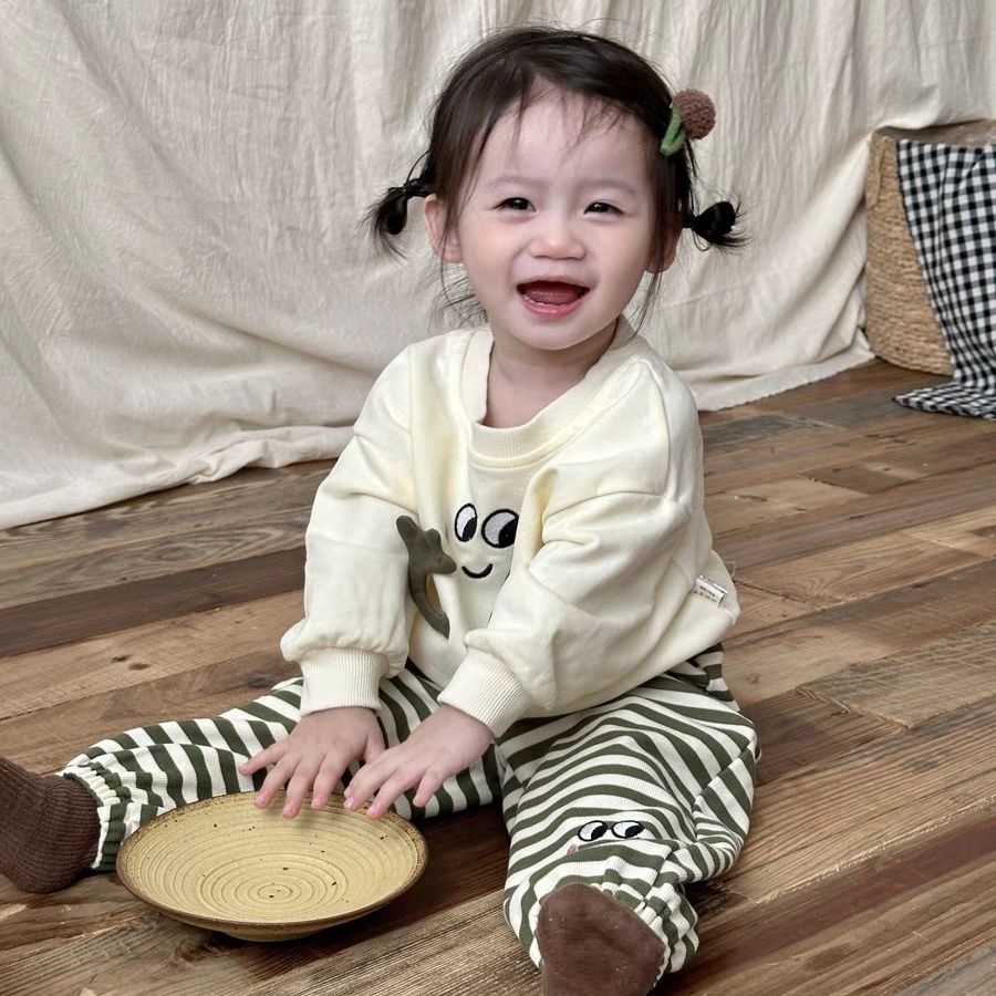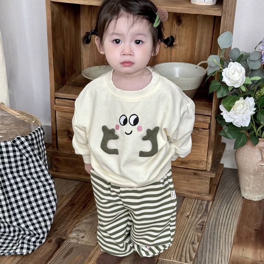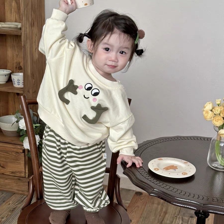 儿童超萌休闲套装秋季婴幼儿女条纹裤子秋款外出服宝宝卫衣两件套