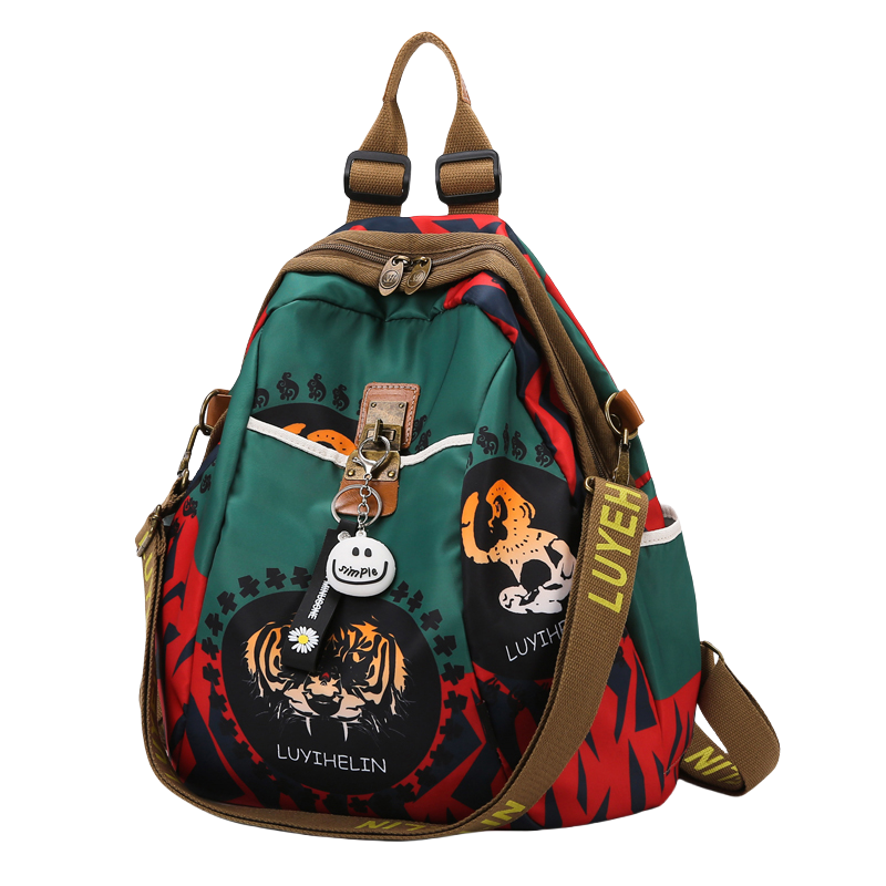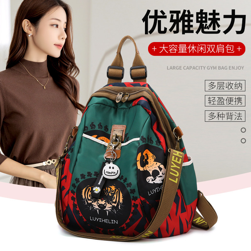 双肩包女2025新款多用休闲女背包旅行包小书包牛津布印花通勤包