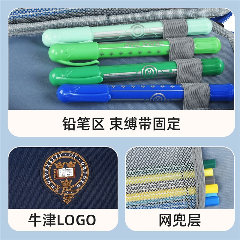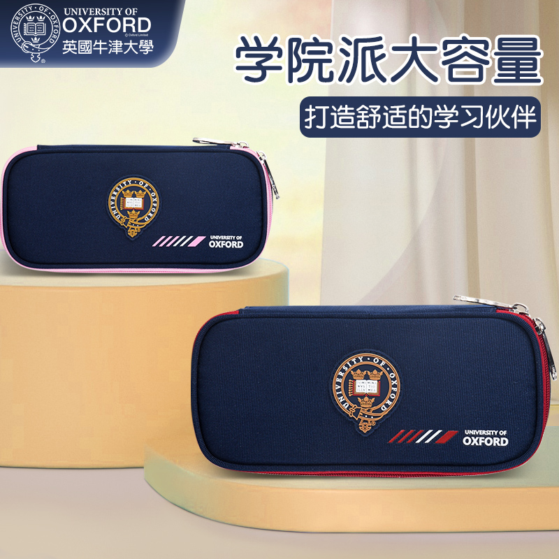 牛津大学小学生笔袋男童简约大容创意分层铅笔盒多功能儿童文具盒