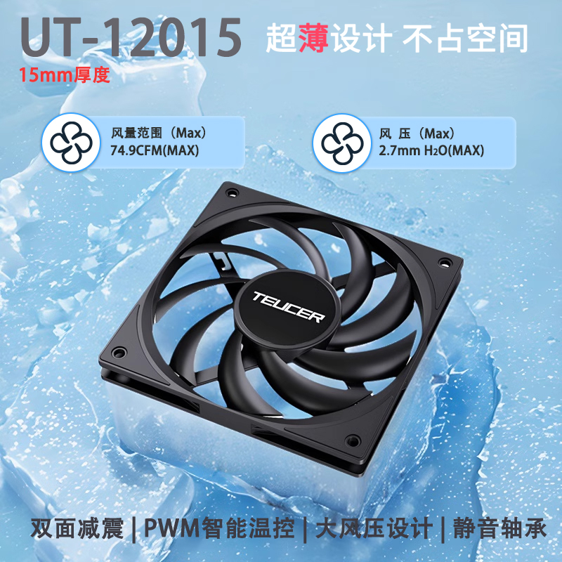 零度世家12015薄扇台式电脑机箱风扇黑色15mm厚温控静音CPU散热器