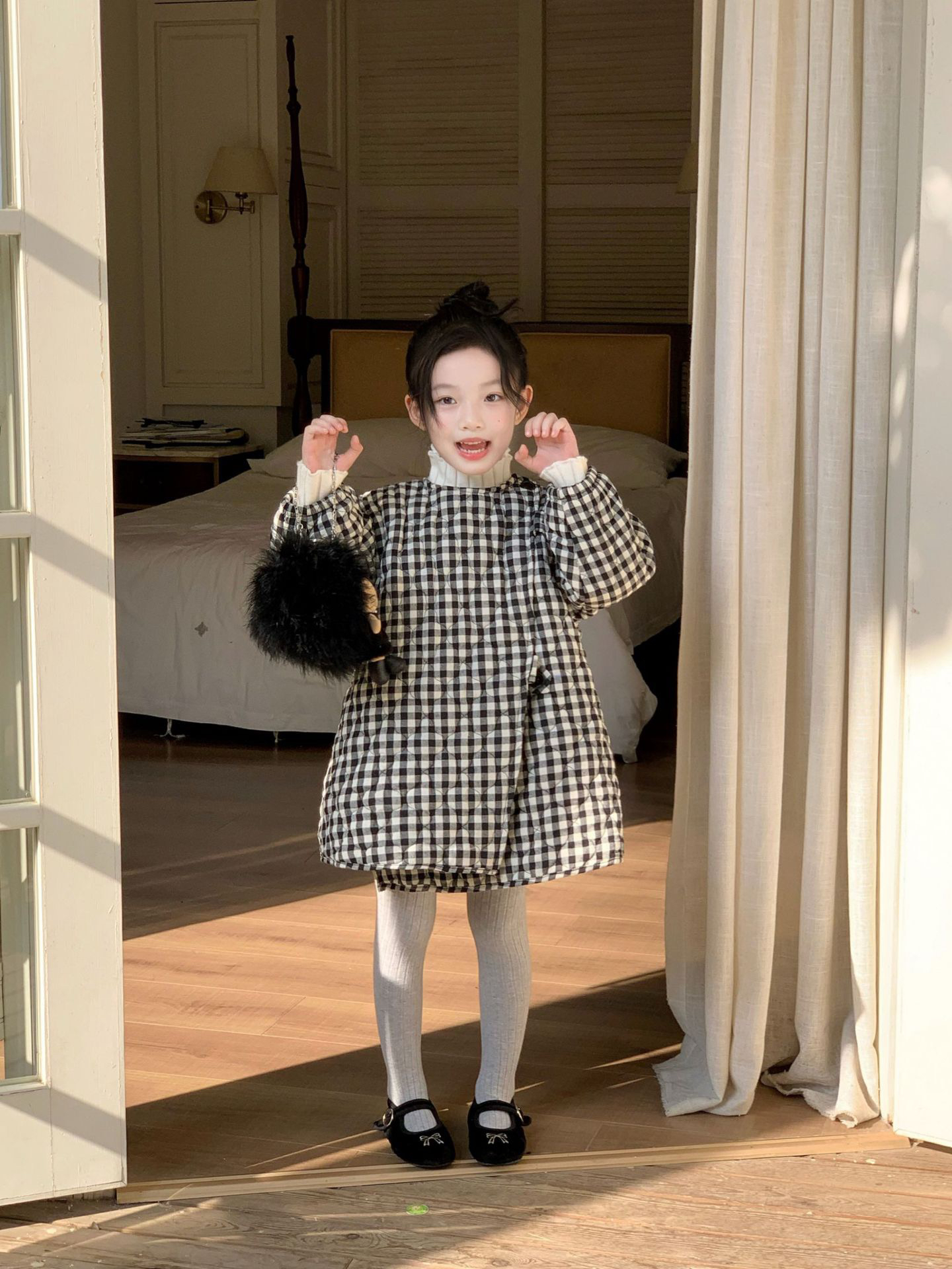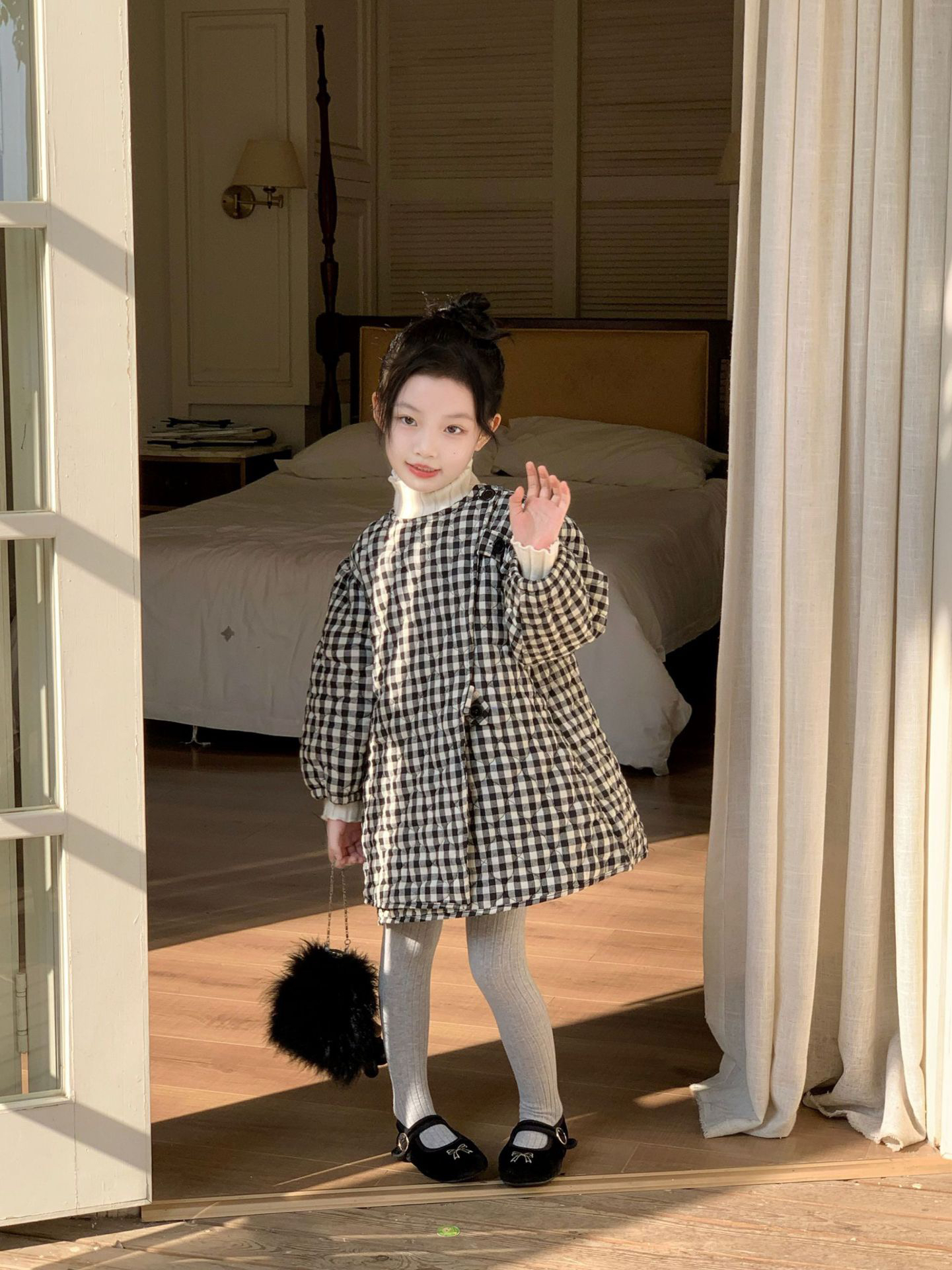 格子棉衣中长款2025冬季新款韩版儿童时尚加厚洋气女童保暖外套
