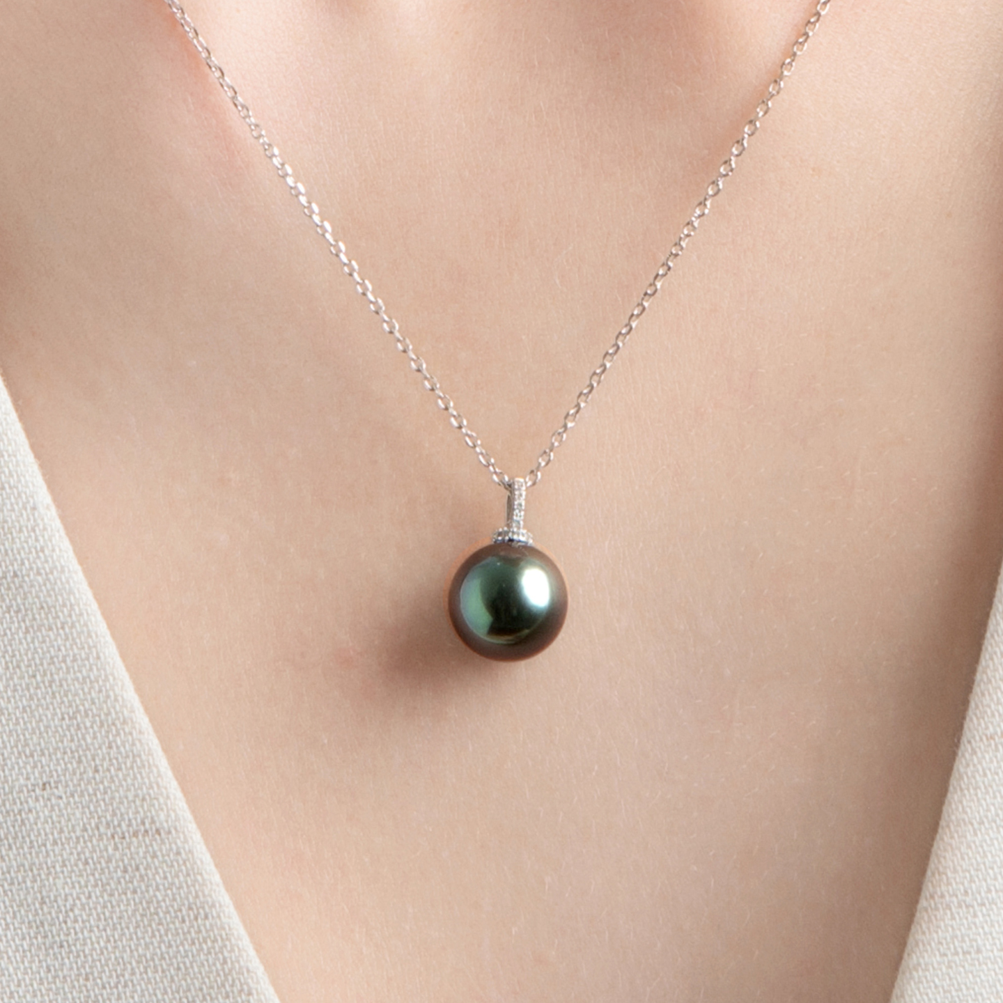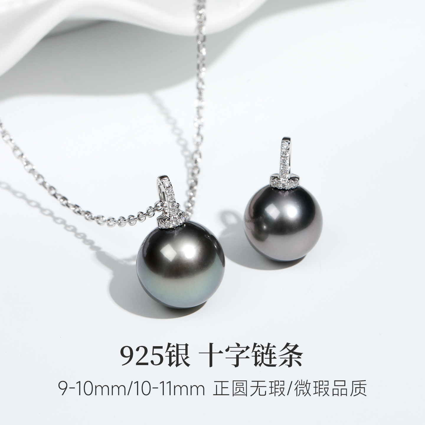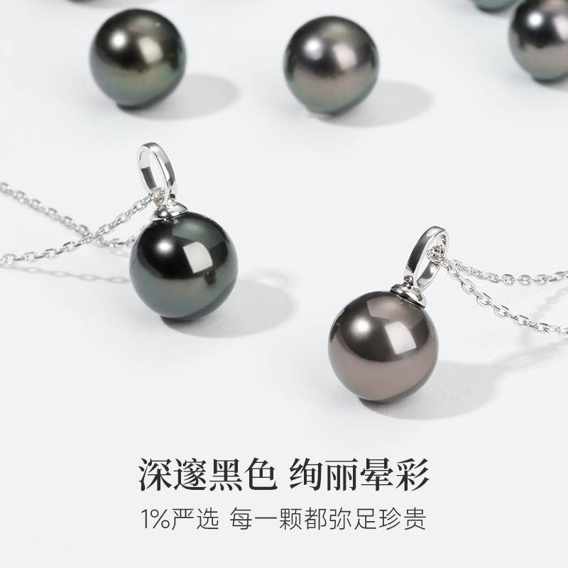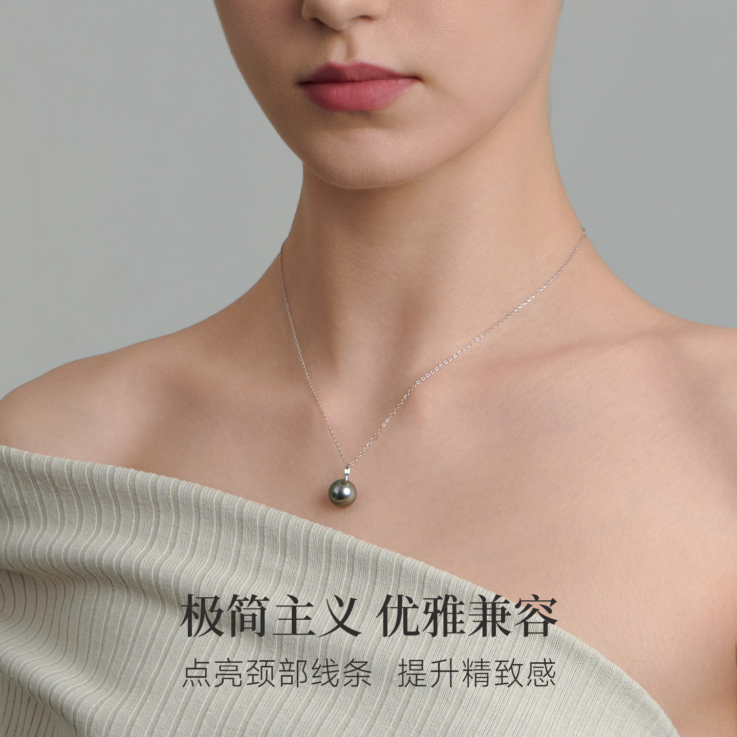 GiO珠宝 18K金大溪地黑珍珠吊坠单颗海水珍珠颈链女项链