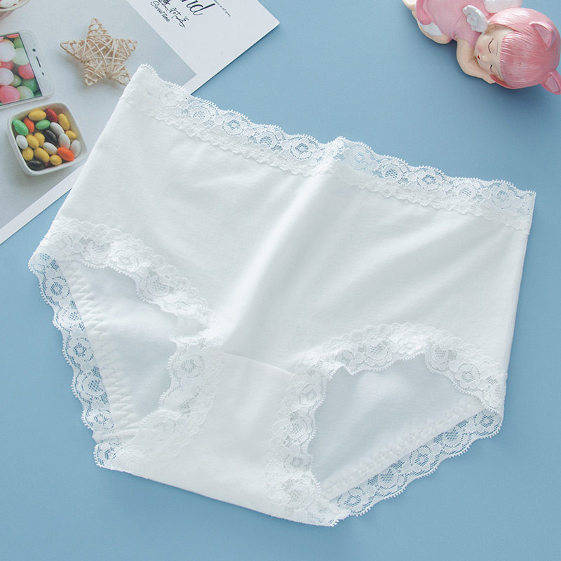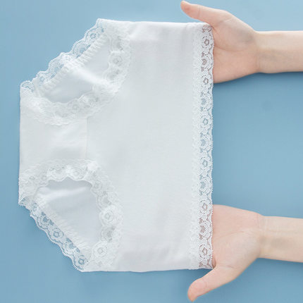 白色中腰内裤女纯棉全棉裆包臀性感蕾丝边无痕夏季薄款女生三角裤