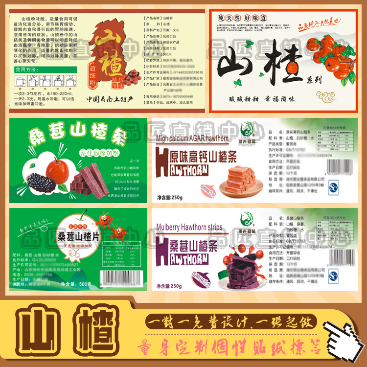 定制山楂条梅条山楂干球瓶贴山楂糕李干不干胶枇杷干糖雪球标签