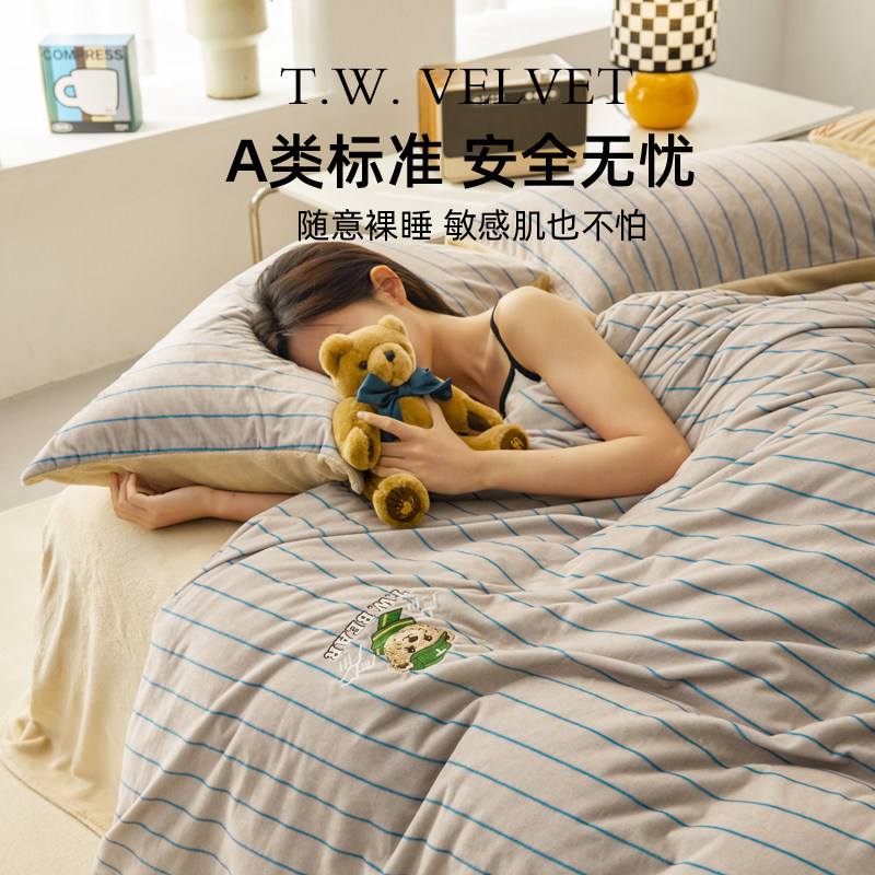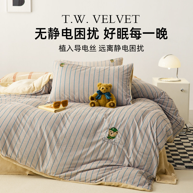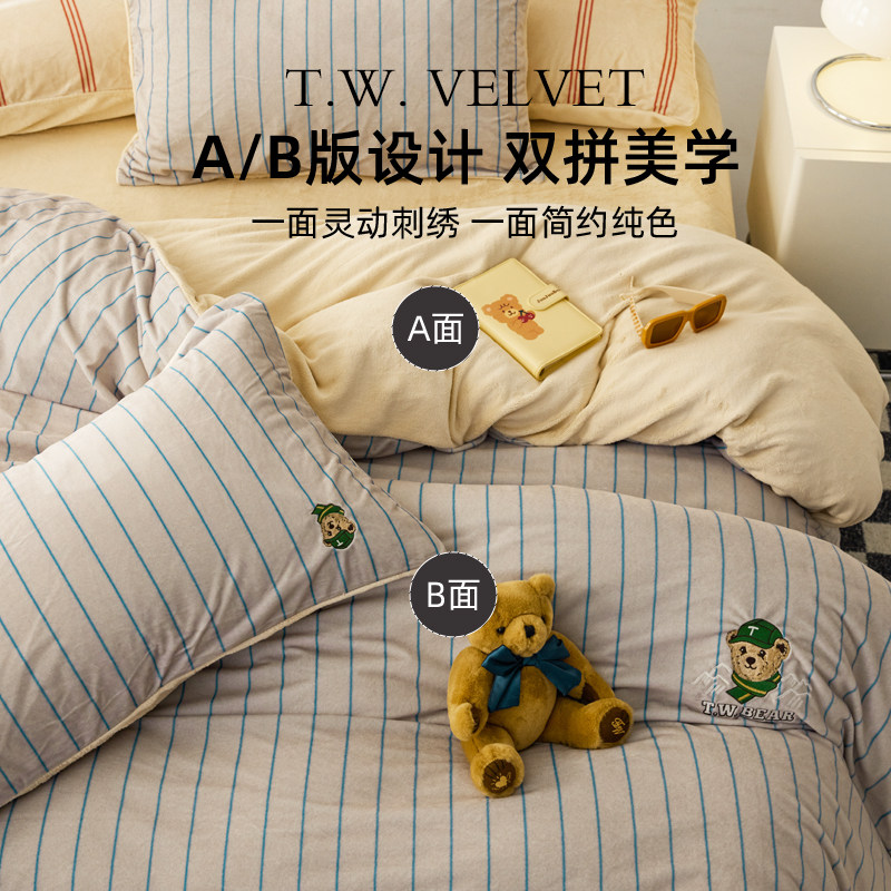 TeenieWeenie防静电牛奶绒四件套秋冬款保暖珊瑚绒宝宝绒床单被套