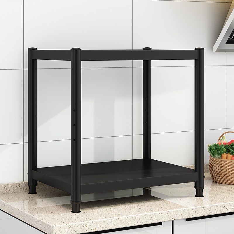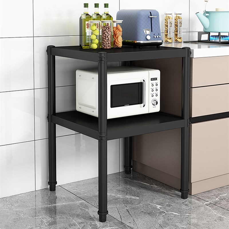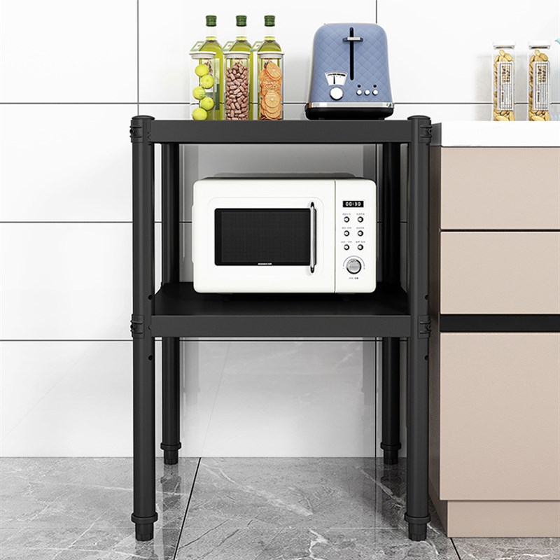 厨房置物架落地式家用两层烤箱微波炉置物架收纳架储物货黑色架子