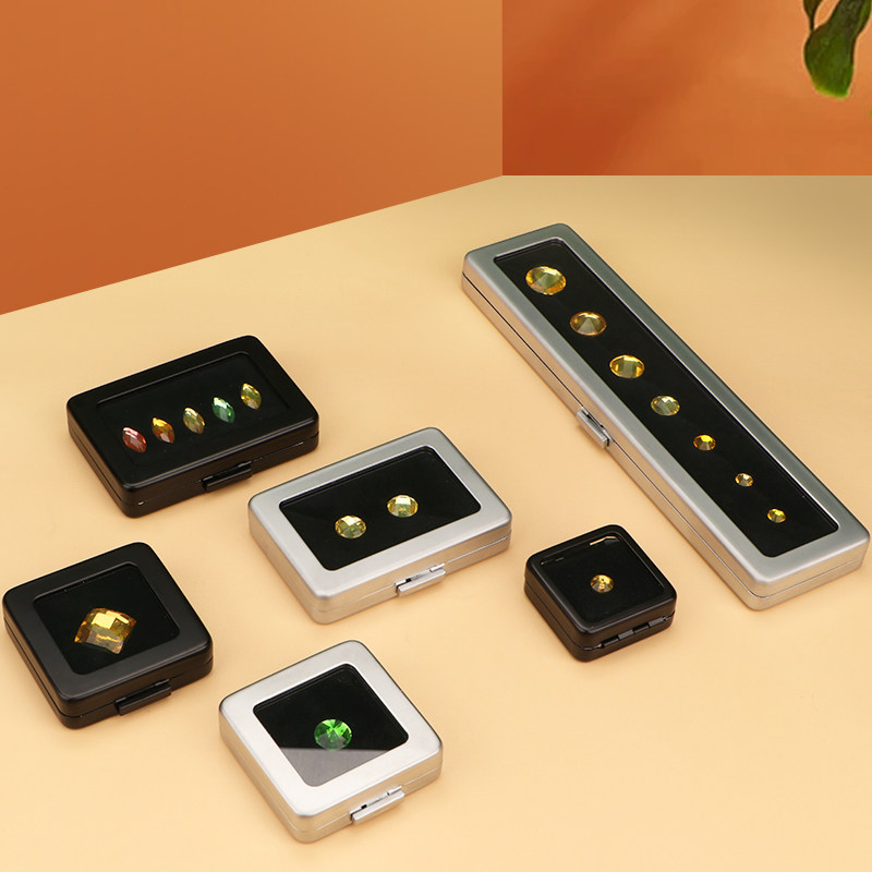 珠宝收纳盒戒面裸石盒宝石盒子不锈钢透明玻璃港式彩宝钻石展示盒