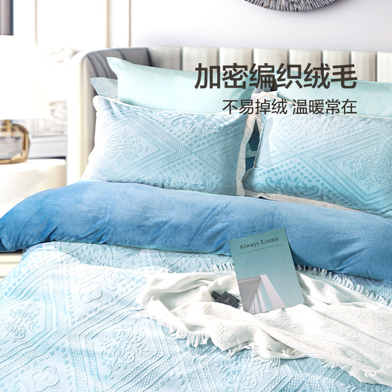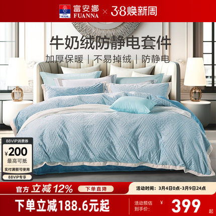 富安娜床上牛奶绒四件套珊瑚绒冬季双面法兰绒秋冬床单被套新款