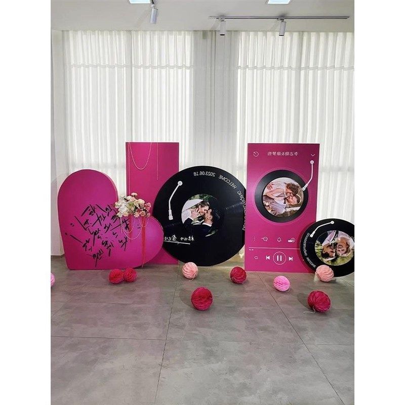 复古唱片机订婚宴布置装饰场景迎宾牌婚礼求婚kt板定制摆件背景墙
