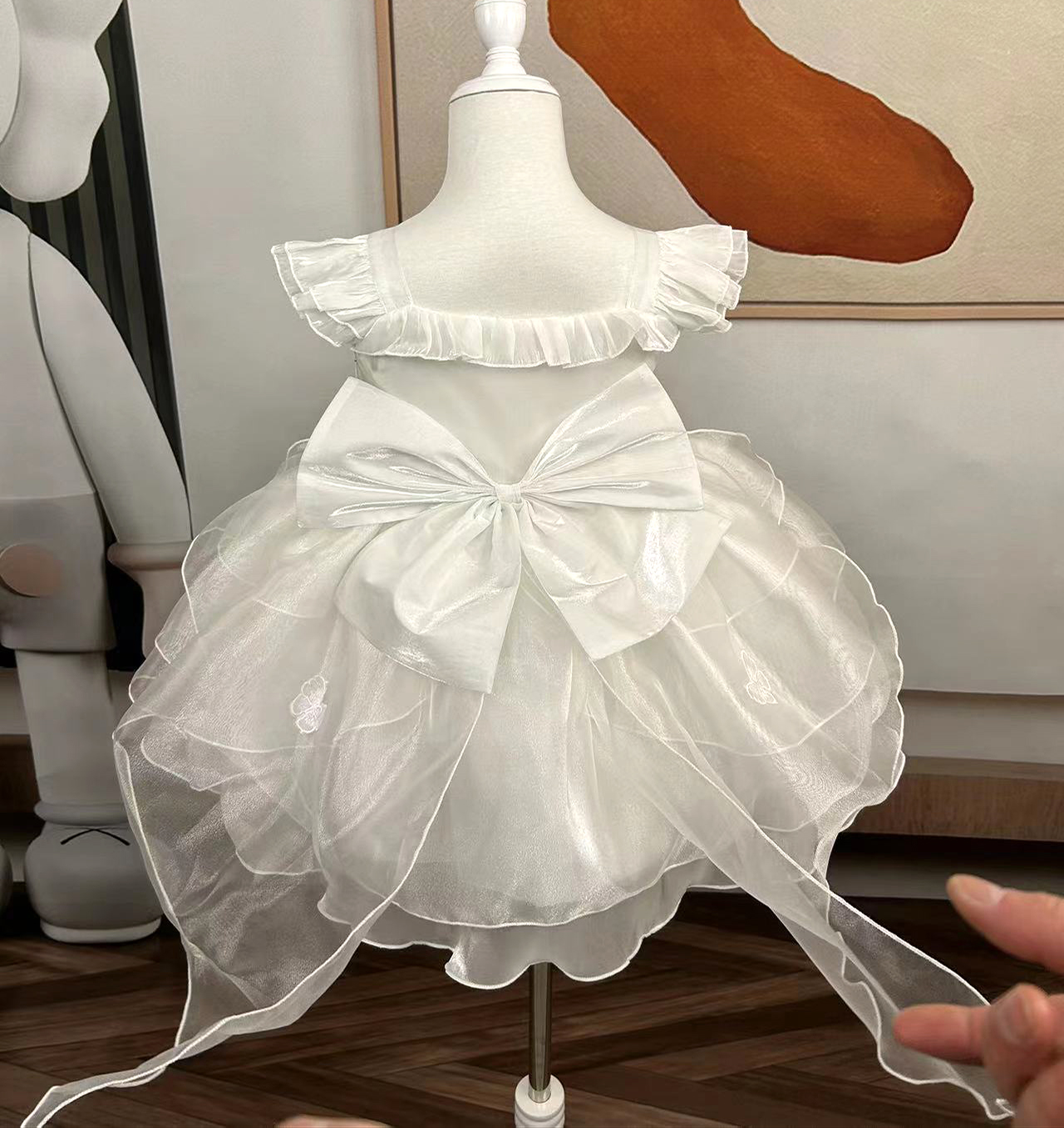 女童夏白色蓬蓬公主连衣裙洛丽塔女宝宝生日礼服花童婚纱吊带表演