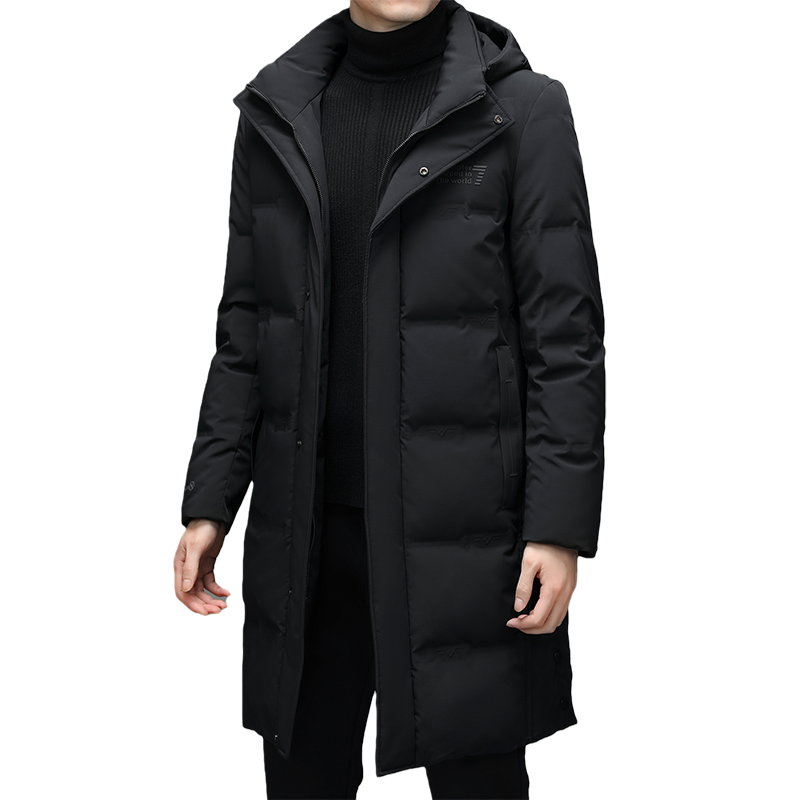 皮尔卡丹可卸帽白鸭绒外套男保暖防寒羽绒服男中长款加厚高充绒量