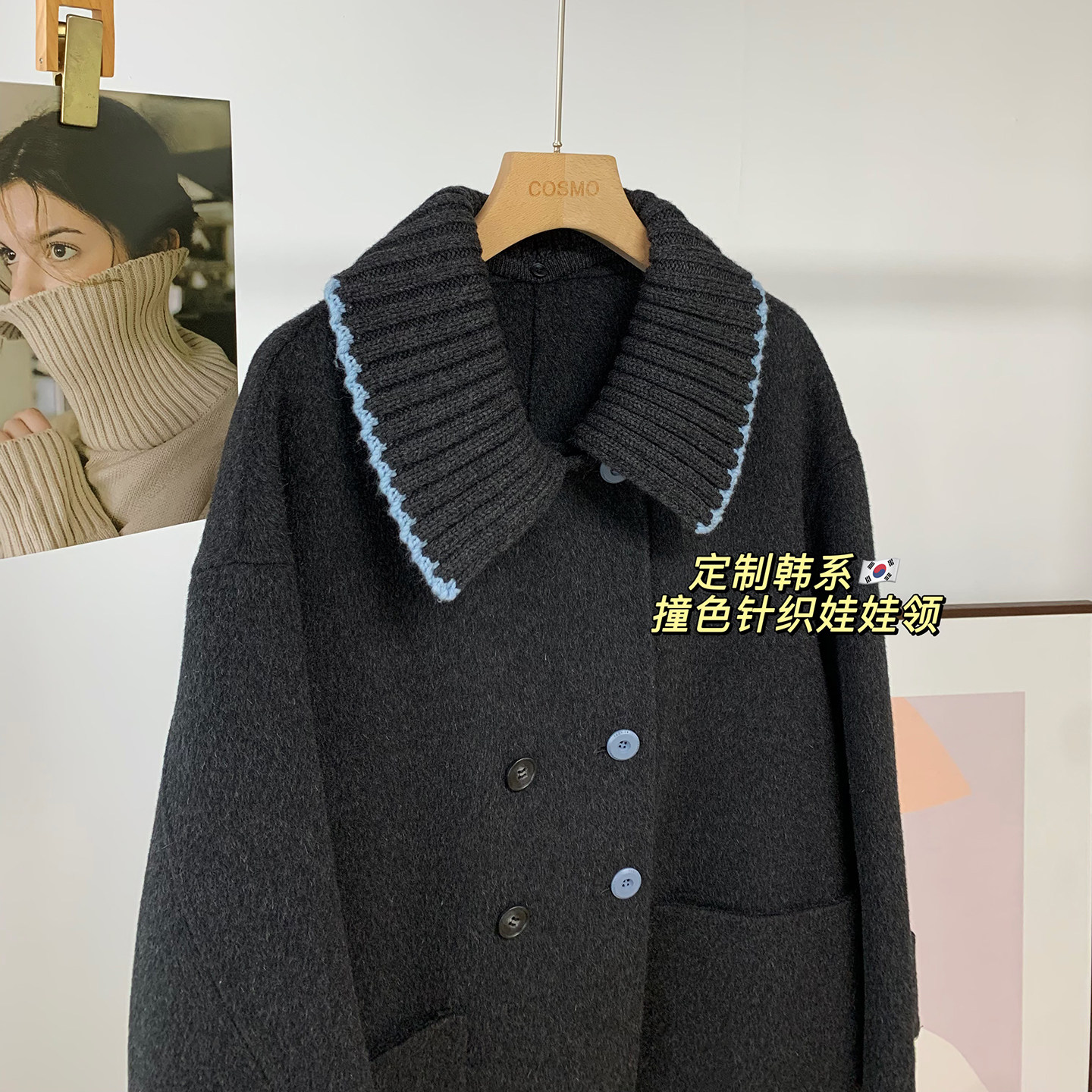 韩系针织娃娃领羊毛大衣