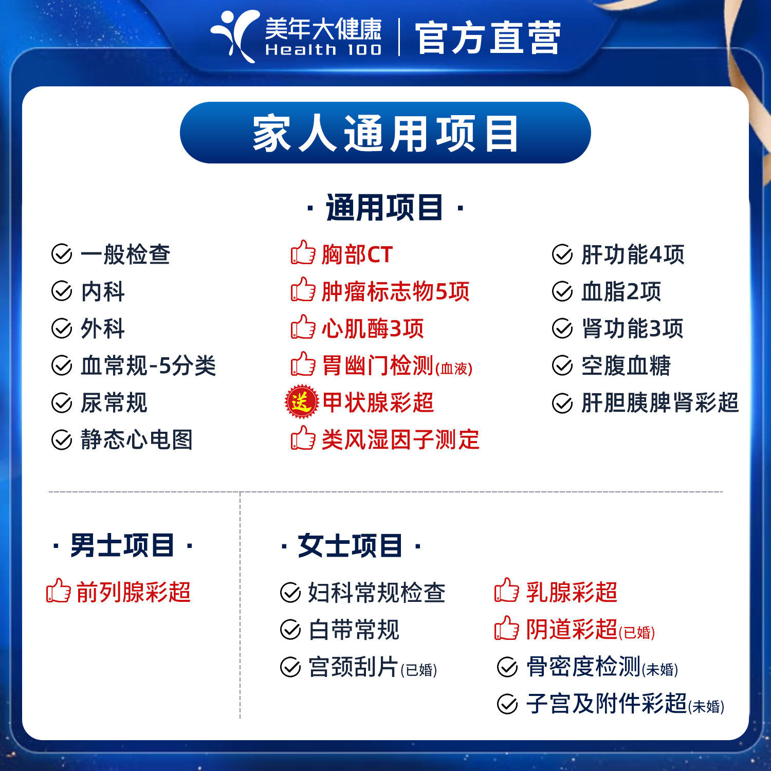 美年大健康家人通用双人体检套餐 中青老年男女性全身通用体检