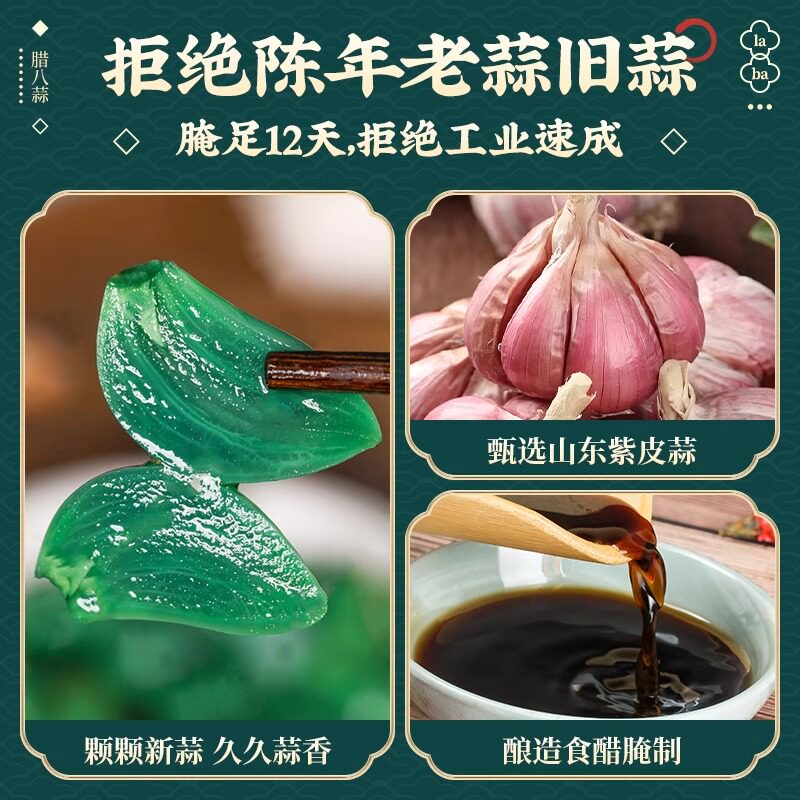 腊八蒜正宗山东特产醋泡绿蒜咸菜下饭开胃菜玻璃瓶罐装真空包邮