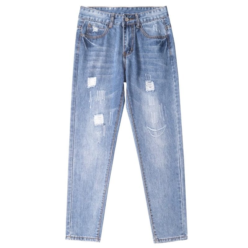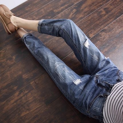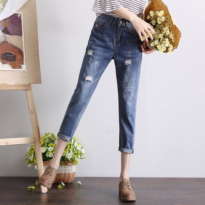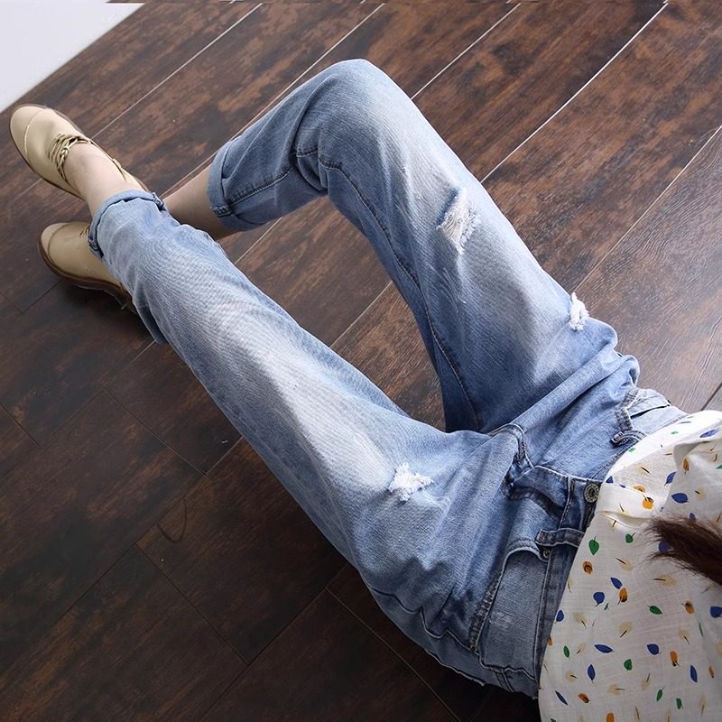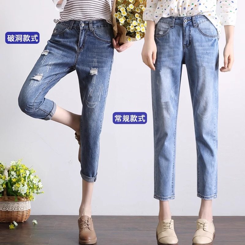 夏秋破洞牛仔裤女直筒宽松薄款2025年新款高腰小个子九分老爹裤子