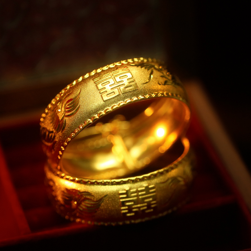 新娘结婚全金色秀禾国风龙凤手镯女开口款双喜婚礼高品质订婚手饰