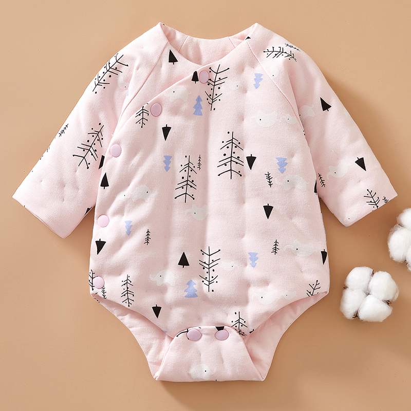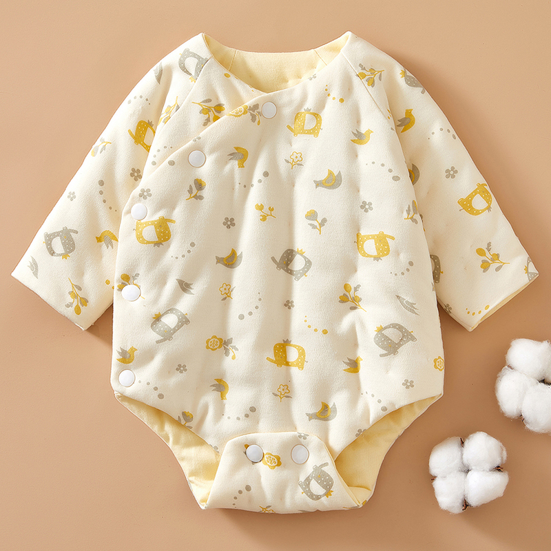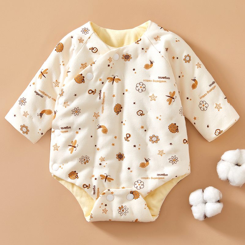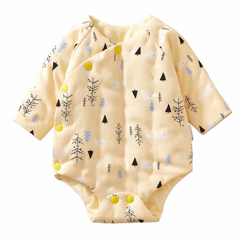 婴儿纯棉花手工包屁衣秋春秋夹棉长袖三角哈衣新生儿连体睡衣爬服