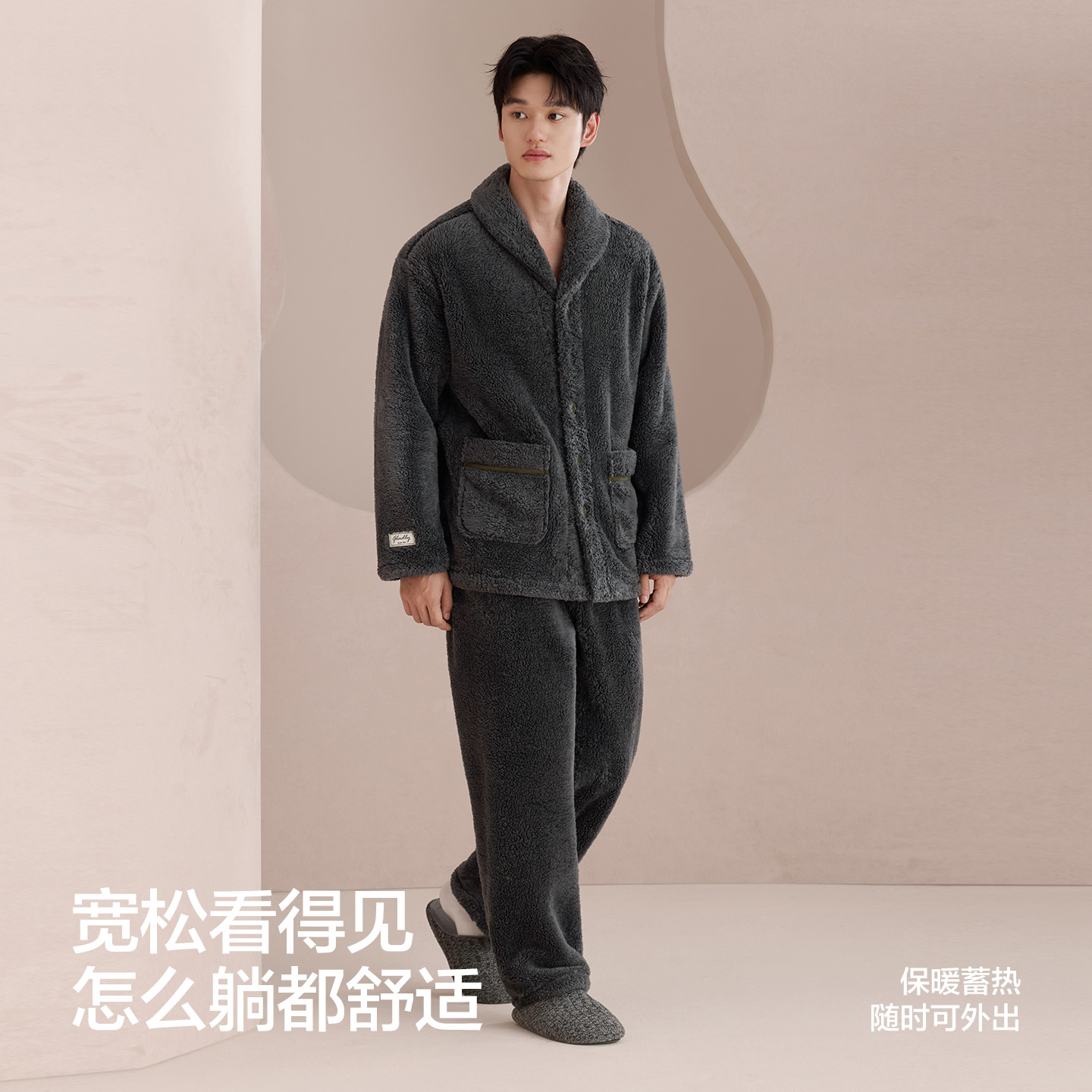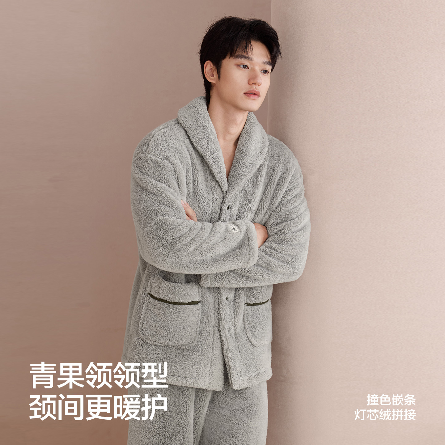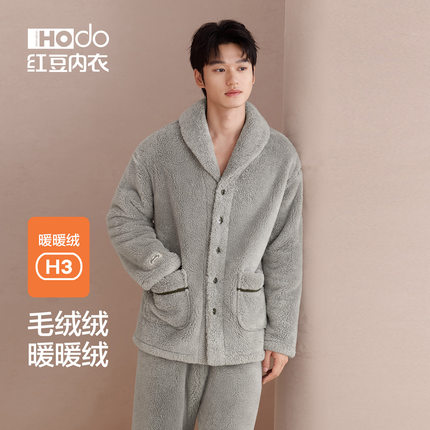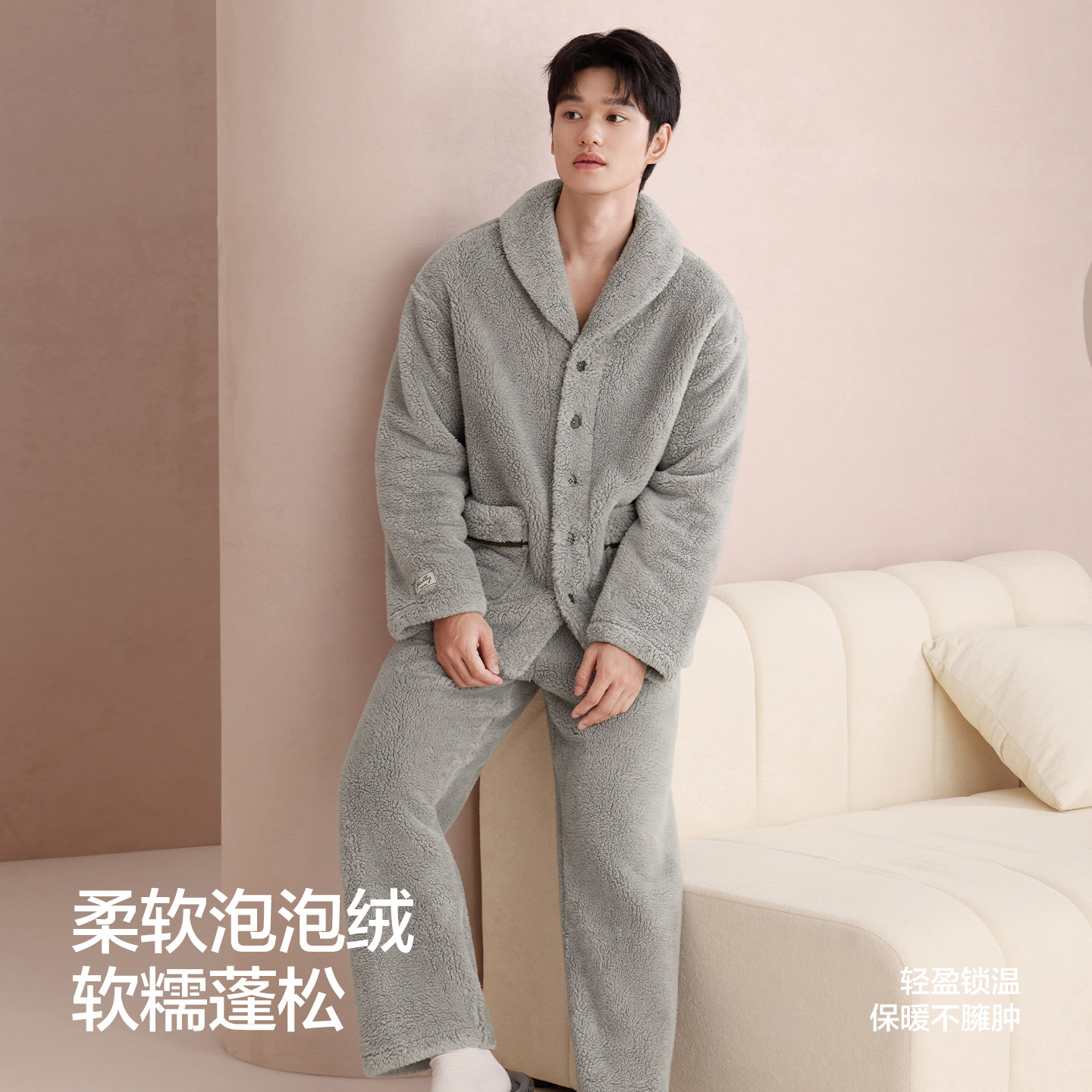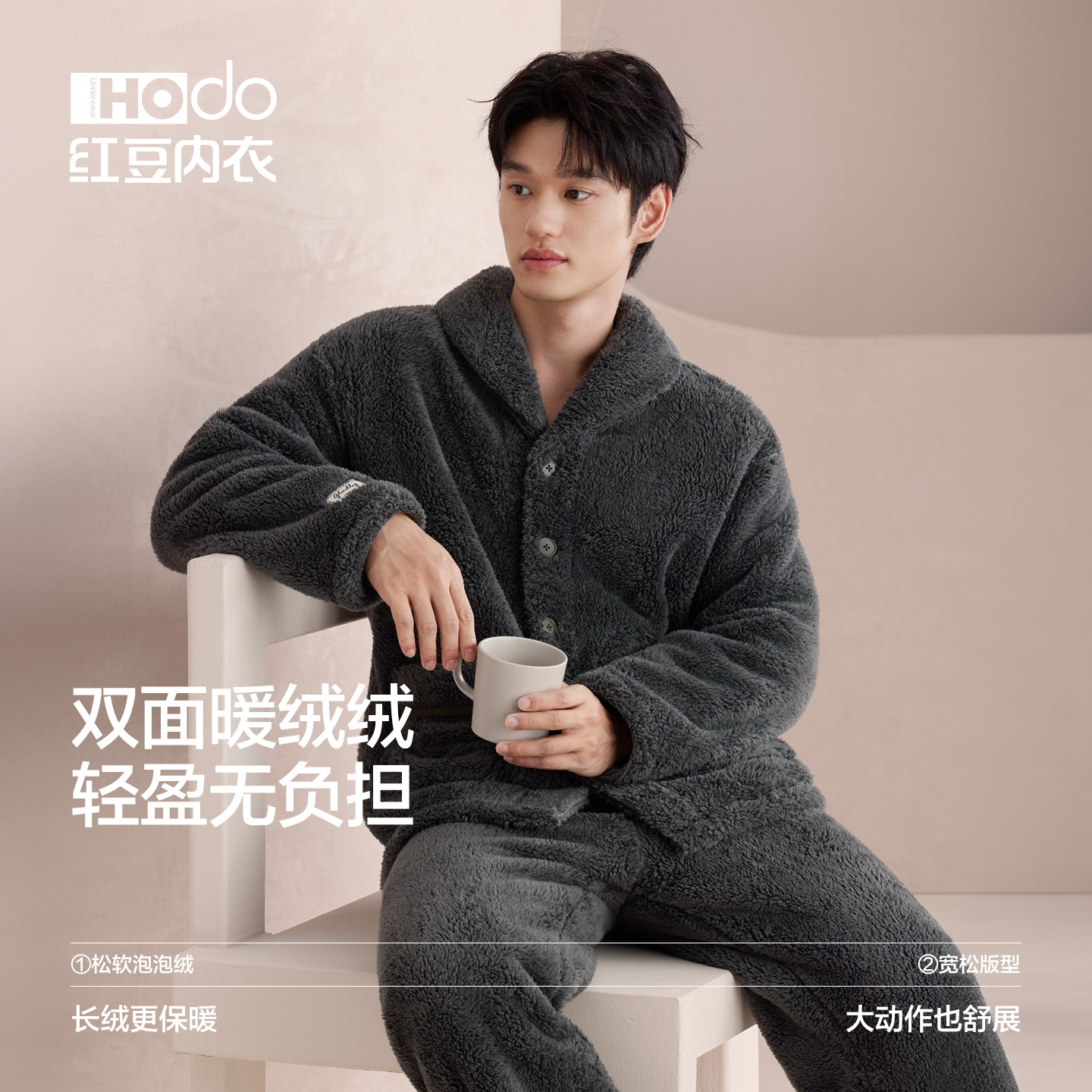 红豆男士睡衣泡泡绒加厚冬季珊瑚绒保暖可外穿不易掉毛家居服套装