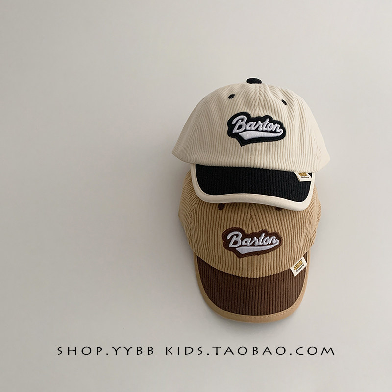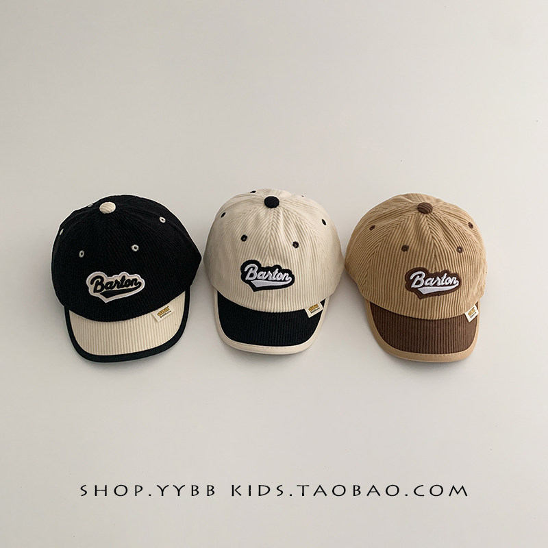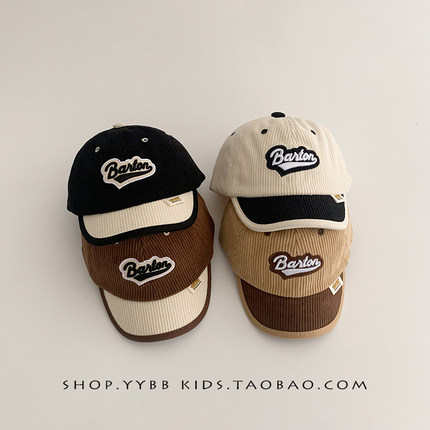 韩版儿童帽子秋冬季灯芯绒百搭鸭舌帽男宝宝防风保暖棒球帽女春款