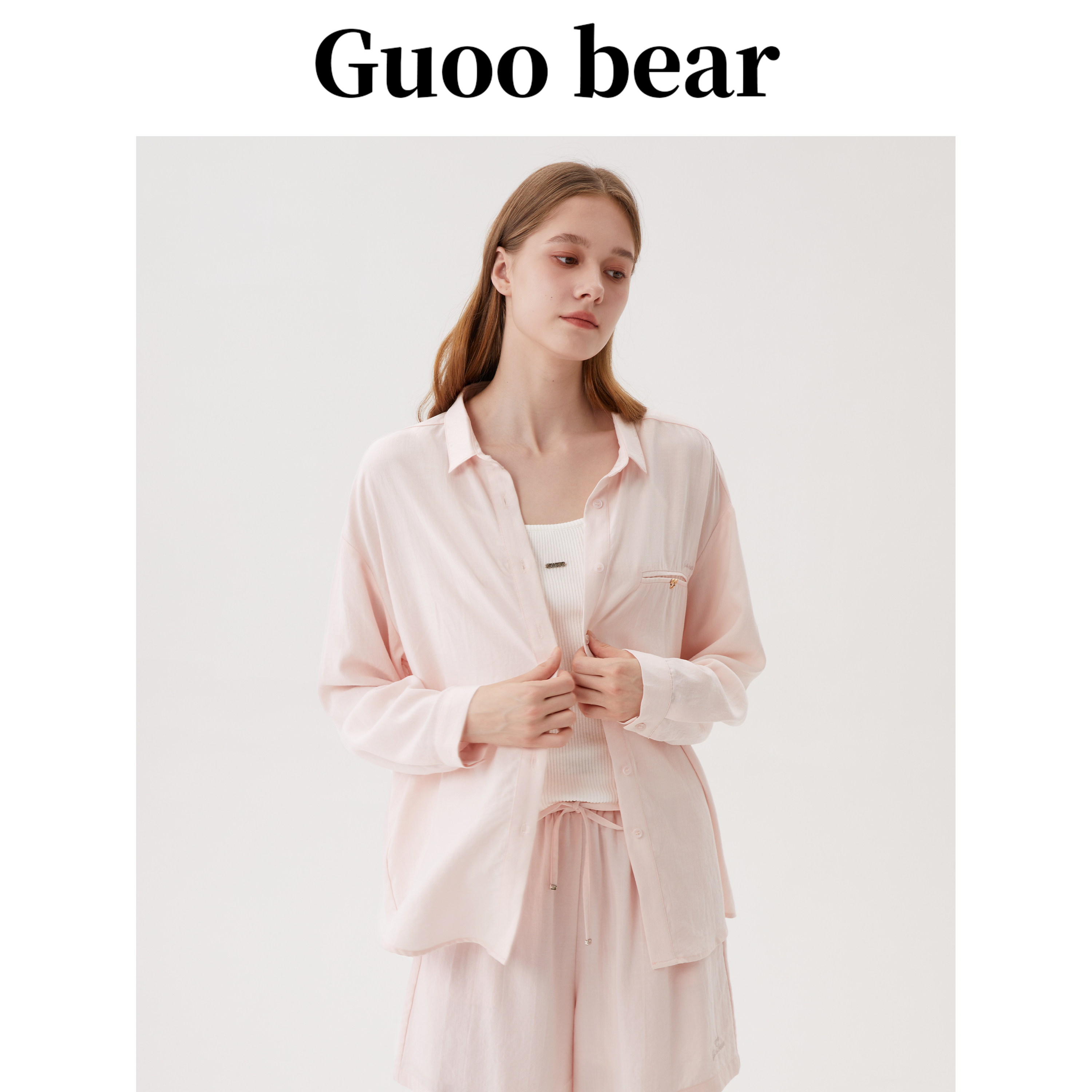 GUOOBEAR古家小熊女装专柜正品2025新款粉色防晒衬衫女秋季长袖