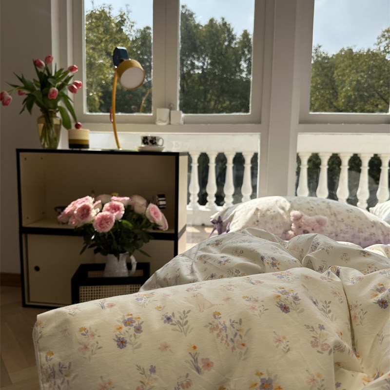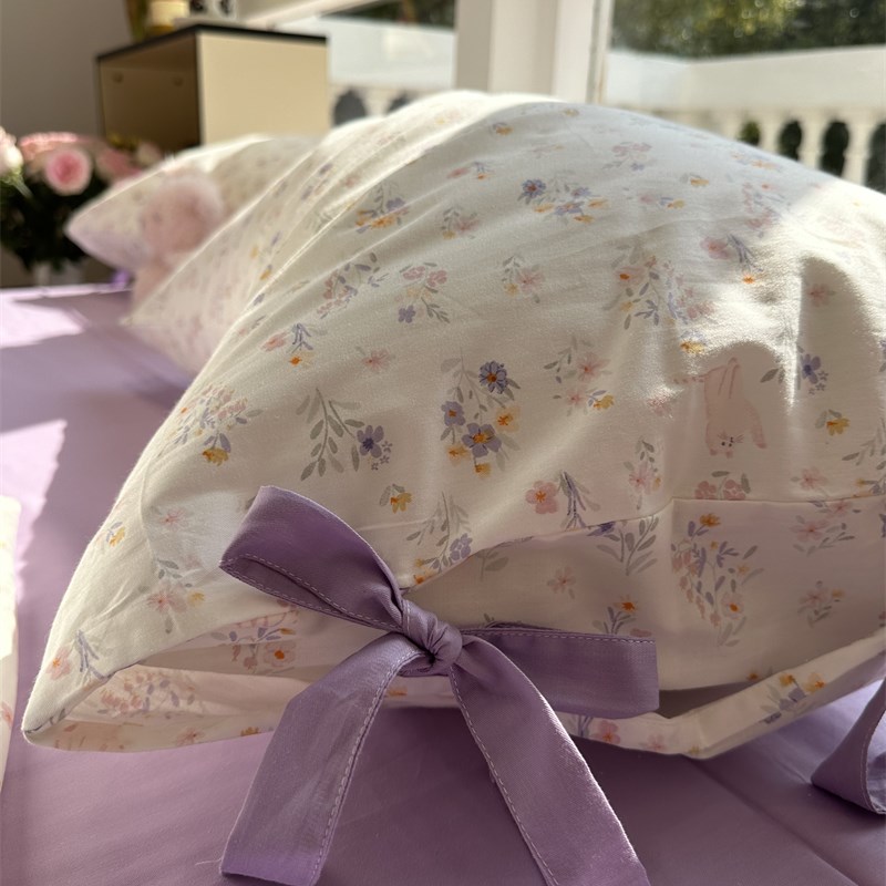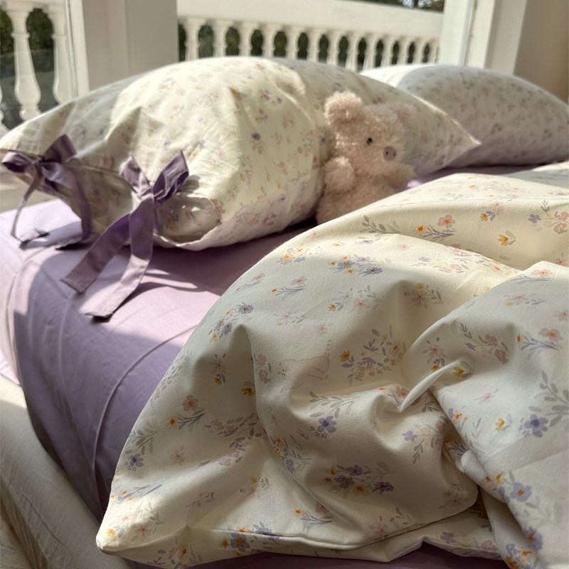 美式田园风碎花小猫床上四件套1.5m1.8少女心宿舍全棉被套床