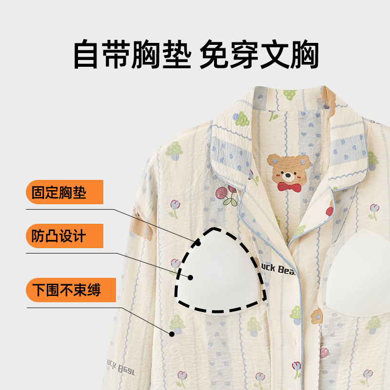 带胸垫月子服春秋款纯棉产后云朵棉哺乳睡衣女孕妇喂奶家居服套装